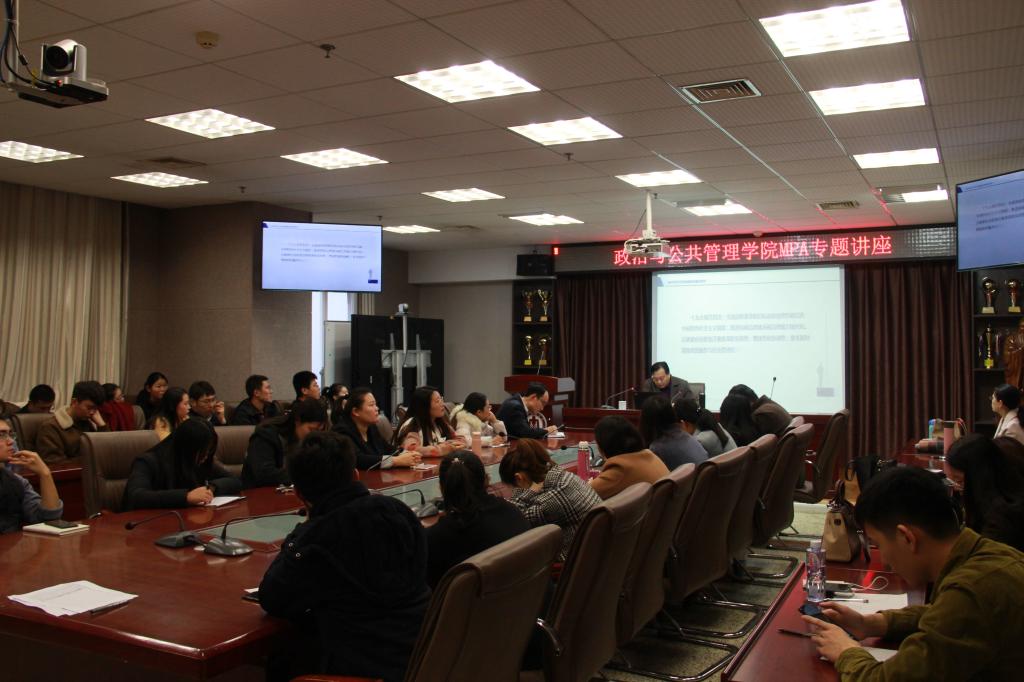 2018级MPA研究生作题为“当前中国公共管理面临的问题及探究”的专题讲座,讲座由MPA教育中心副主任徐自强主持,2018级MPA研究生参加了此次讲座。