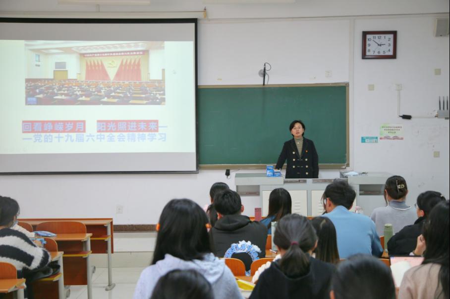 回首峥嵘之路,冰心永在玉壶。为学习贯彻党的十九届六中全会精神,进一步深化党史学习教育,128日,欧冠直播平台 党委书记卢瑞霞于JS3032020级全体入党积极分子讲授“回看峥嵘岁月,阳光照进未来”学习党的十九届六中全会精神党课。