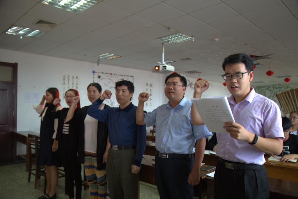 支部纳新大会由陈敏同志主持,大会主要议题是讨论表决王斐、吴倩2名同志入党问题。根据党员发展工作程序,发展对象王斐、吴倩同志依次宣读了入党志愿书并说明个人履历及家庭社会关系,表明加入党组织的决心,承诺将按照党员标准严格要求自己,努力成为一名合格党员。入党介绍人对2名预备党员的基本情况分别进行了简要介绍,同时指出了他们的不足及今后努力的方向。韩凯辉同志代表党支部党员会报告对2名发展对象的审查情况,与会党员展开了充分的民主讨论,宋钧文、陈敏、张华、韩凯辉同志对她们的表现给予了肯定,明确指出其存在的不足并提出改进意见。经由无记名投票表决,唱票人张华发表意见,2名同志均获全票通过。陈敏同志宣读、与会正式党员举手表决通过了同意接受王斐、吴倩2名同志为中共预备党员的支部大会决议。宋钧文对两位预备党员表示祝贺并提出要求,他指出,思想上入党永无止境,作为预备党员必须时刻绷紧思想这根弦,坚定政治立场、坚定政治选择,常学常新,在学习与工作中充分发挥带头模范作用,顺利度过预备期,成为一名思想领先、信念坚定的优秀党员。大会最后,在场党员集体进行了庄严宣誓。