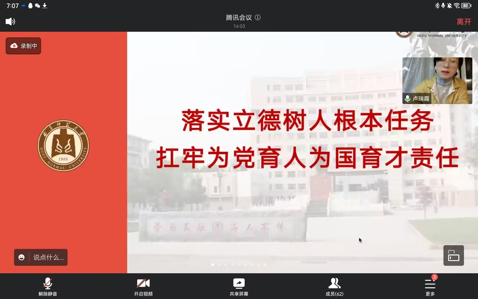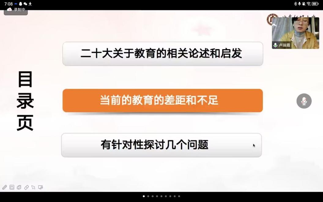 会上,卢瑞霞介绍党的二十大报告中关于教育的相关论述和启发深入探讨教育的重要性系统性人民性适应性随后她立足于当前教育存在的差距和不足针对性地探讨相关问题并指出教育部门在推进高校人才队伍建设中的实践路径最后卢瑞霞作出总结发言她强调教育工作者要坚持弘德传道实事求是深化改革理论武装的基本原则重视立场观点和方法的传导与应用强化对学生的理想信念教育引领人民立场和完善体制推动教育改革创新和焕发教育活力