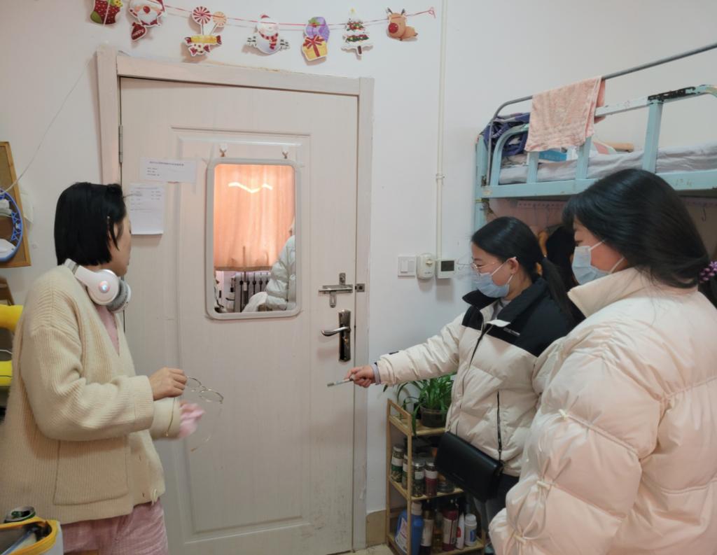 研究生宿舍,对寒假离校前宿舍安全与卫生情况开展全面细致的检查工作。