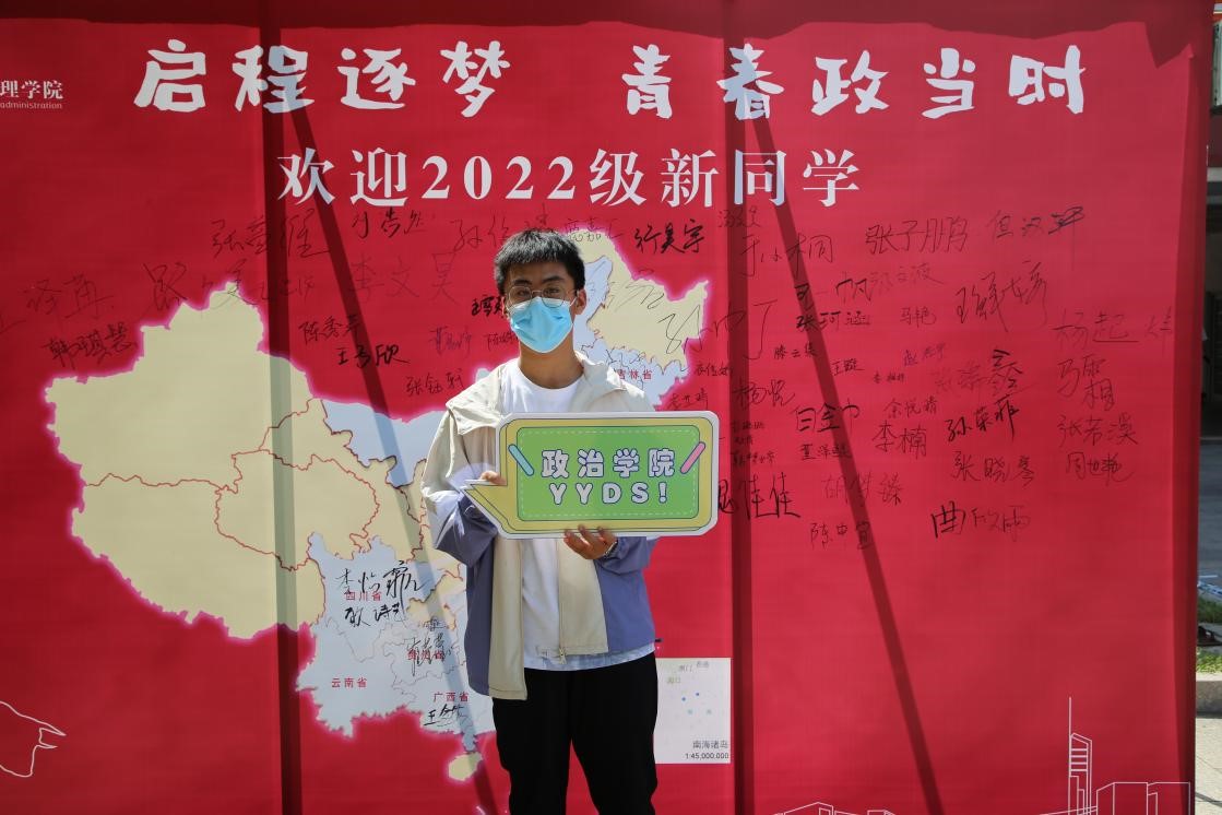 文创礼品,在迎新板上留下姓名,拍摄入学留念,这一方式给2022级同学们留下了良好的参与体验,使其感受到了政院深厚的集体氛围。