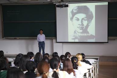 王元如讲到,辉煌业绩是实干创造出来的,是无数革命先烈用鲜血和生命换来的,并通过一个短片展示为国捐躯的革命先烈。让学生在视频中感受先烈为新中国甘愿抛头颅、洒热血的英勇气概,在潜移默化中感悟英雄精神。