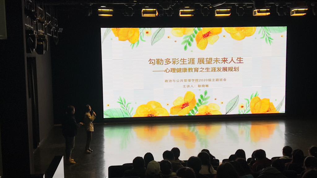 辅导员耿晓敏老师以“勾勒多彩生涯,展望未来人生”为主题在小剧场召开了班会,从“就业”、“创业”、“考研”等多个就业方向选择向同学们做了未来职业规划的介绍,并针对学生的不同情况给出了合理建议,并指出要和压力做朋友,变压力为动力,号召同学们合理规划未来,注重压力缓解,营造健康的身心。