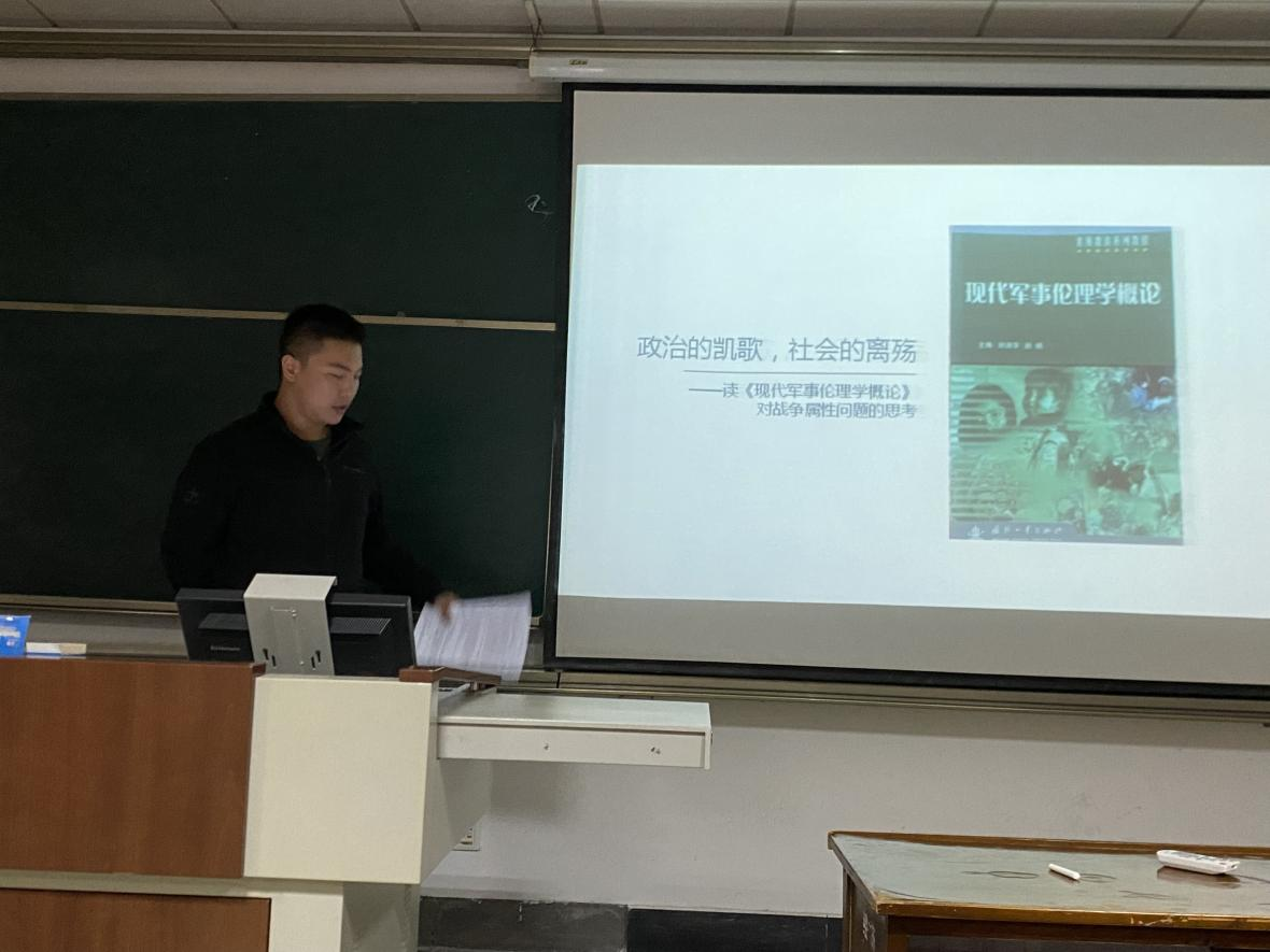 2023级曹一荻同学分享了刘淑萍《现代军事伦理学概论》一书。他指出从军事伦理角度来看,“为何而战”、“为谁而战”和“如何去战”是战争理论与实践中带有根本性的重大问题。通过对我国军事伦理思想的发展进行分析,深入学习了周恩来军事伦理思想正义性的核心价值。就当前形势下世界多发的局部冲突与战争问题,进行了案例结合,并总结遵循正义原则和为民原则。这是军事道德的核心,任何行动都必须以正义和人民利益为出发点,不能为了个人或小团体的利益而违背这一原则。