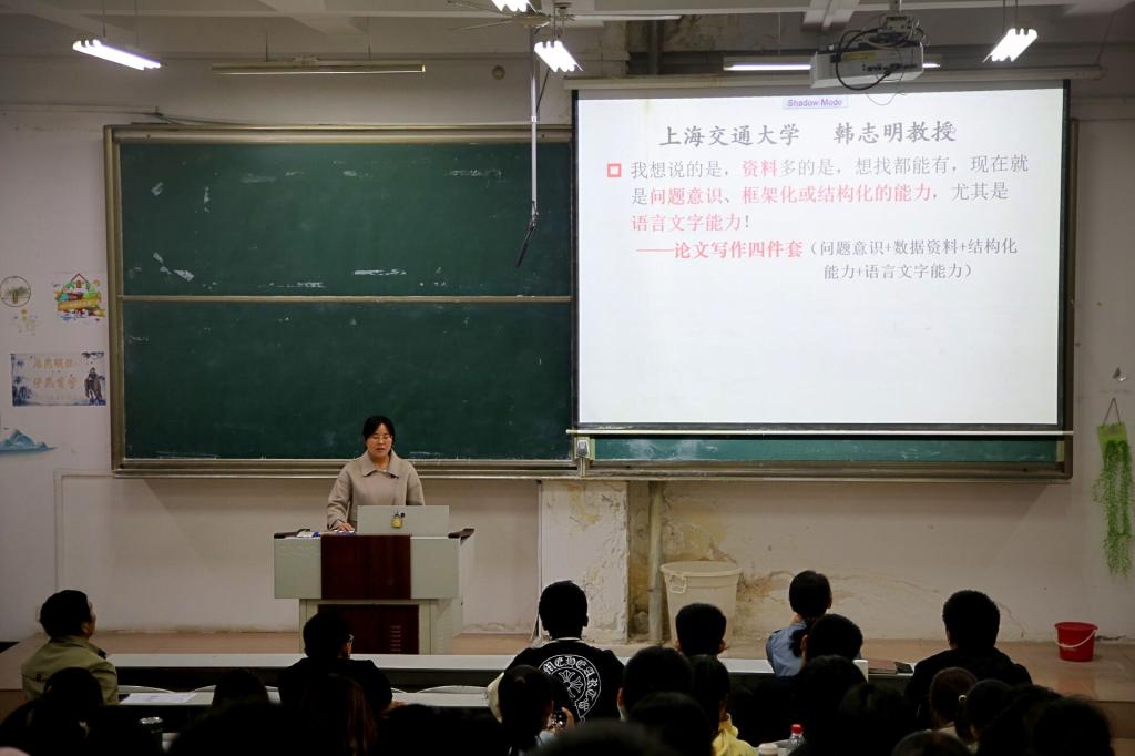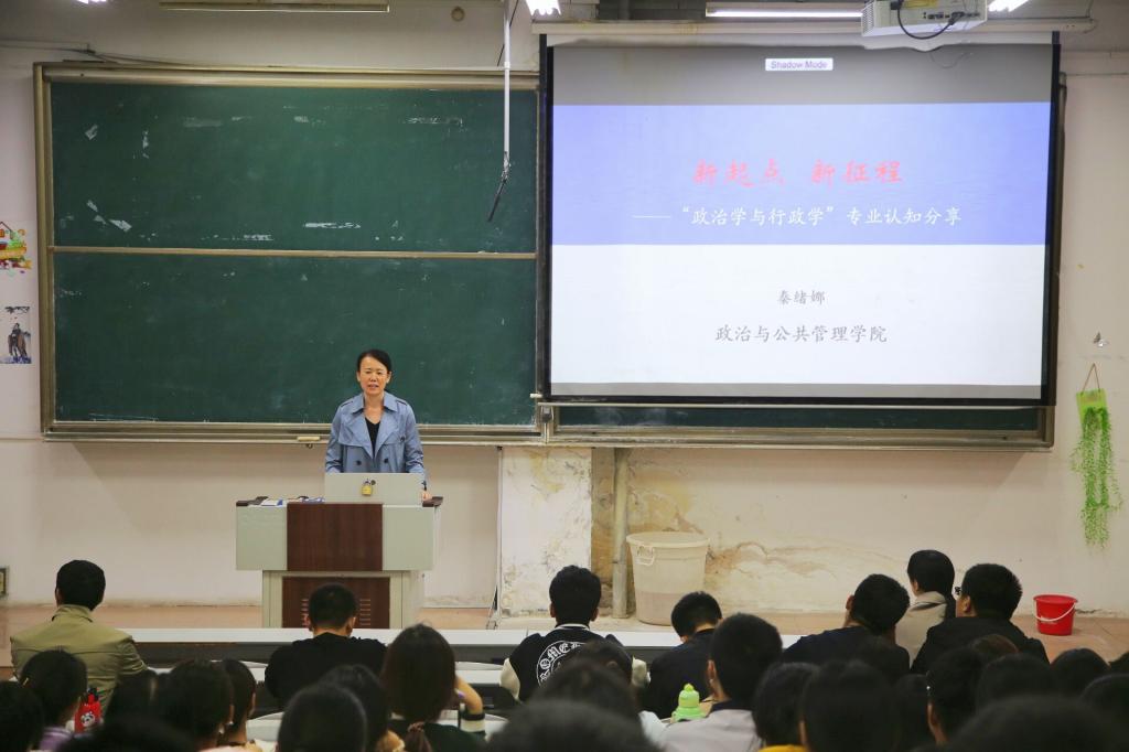 秦绪娜老师从政治学与行政学专业是什么、培养目标、就业方向等方面做出讲解,帮助同学们了解政治学与行政学专业现状与未来的发展方向,同时提出专业学习建议,帮助同学们找到正确的学习方式。她鼓励同学们把大学作为新起点,开启新征程,告诉同学们“大学不是终点,是人生新征程的起点。学识影响眼界,眼界决定格局,格局影响人生”。程香丽老师带领同学们探讨专业“考研那些事儿”,分别从考研方向、考研报考、基础准备、学涯规划、自我调适等方面进行讲述,程老师借助韩志明教授的教学谚语告诫同学们专业课的基础性与多读书的重要性。同时告诉同学们在形成良好读书习惯、学习习惯的同时,也不要忘记人际交往、运动爱好,要让自己成为一个完整的人,一个大写的人,一个松弛有度的人。最后由王元如老师做总结发言,告诫同学们不要虚度大学四年,不要上无意义的大学,要认真学习,积极参与实践活动,让自己全面发展。