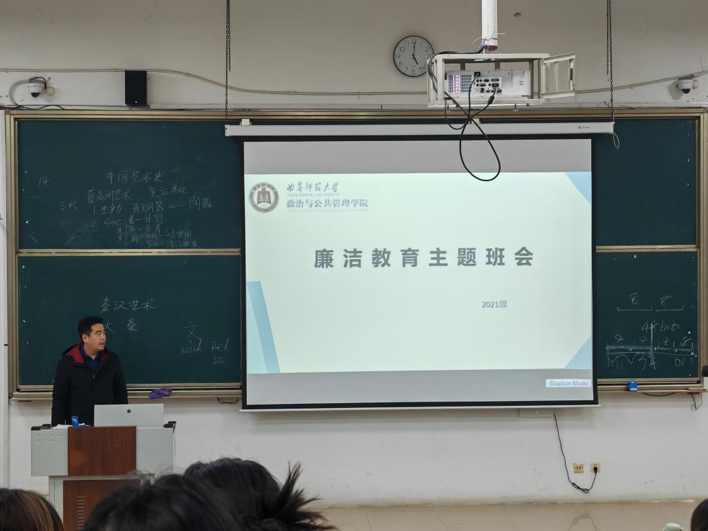 各年级相继围绕“抵制不良思想,增强廉洁自律”主题开展班会。本次廉洁教育班会由各年级辅导员分别主持,全体同学积极参与。