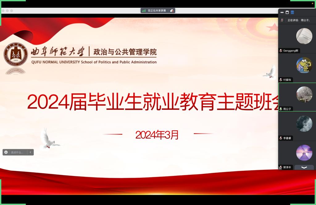 2020级各班分别召开毕业生就业教育主题班会。本次班会采用线上线下相结合的方式,2020级辅导员耿晓敏、张文静,班主任程霞、丁鹏、张玉志、孟祥兴、刘祥乐、李永刚作为主讲,2020级各班同学积极参加。