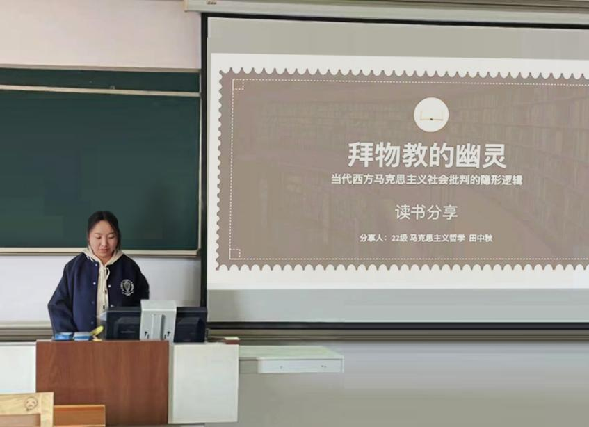 首先,2022级田中秋同学对《拜物教的幽灵——当代西方马克思主义社会批判的隐形逻辑》进行整体性概括和重点部分的凝练总结,结合自己的阅读体会为我们推荐了《物体系》、《消费社会》、《符号政治经济学批判》等相关书籍以及论文。