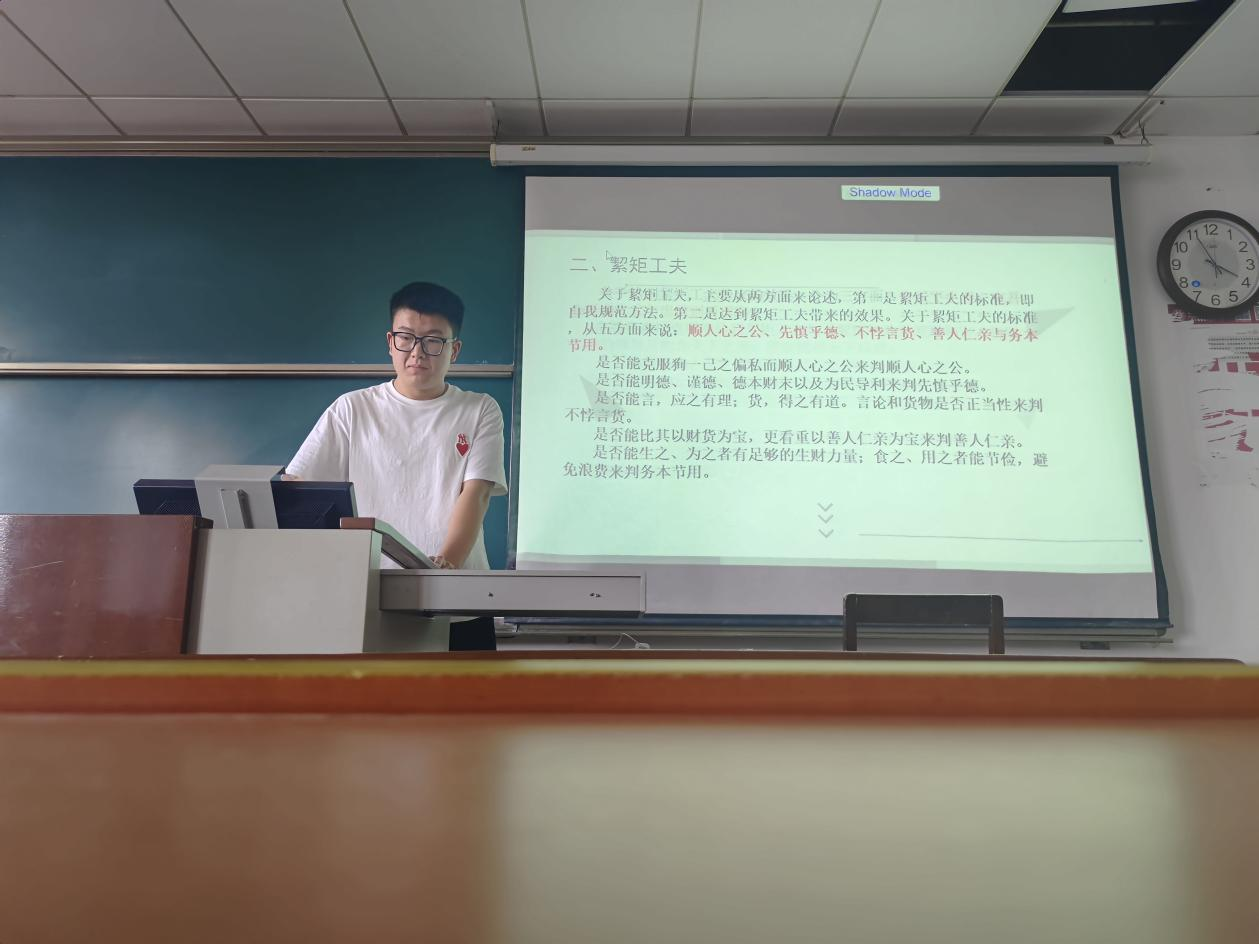 2022级何金虎同学从概念含义的角度对金履祥絜矩工夫思想进行解读,他指出,絜矩工夫是金履祥工夫论的核心,本文是通过论述絜矩工夫的标准与达到絜矩工夫的效果,来建构金履祥絜矩工夫思想。