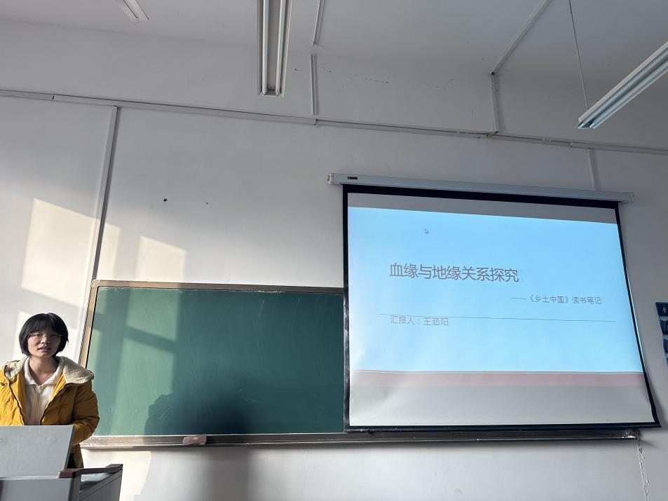 2024级王涵阳同学在课堂上分享了费孝通的《乡土中国》。她详细解读了费孝通对血缘关系和地缘关系的深刻洞察,首先阐明了血缘关系的基本概念,探讨了其在中国传统社会中的重要地位和影响。分享结束后,王涵阳提出了一个富有前瞻性的问题:"在全球化趋势之下,人们的地缘关系正日益超越传统的地理位置和血缘纽带。网络社交、就业流动等新型社会关系的形成,将会对'家乡'这一概念产生哪些变革?"引发了同学们对现代社会中人际关系变迁的广泛讨论。