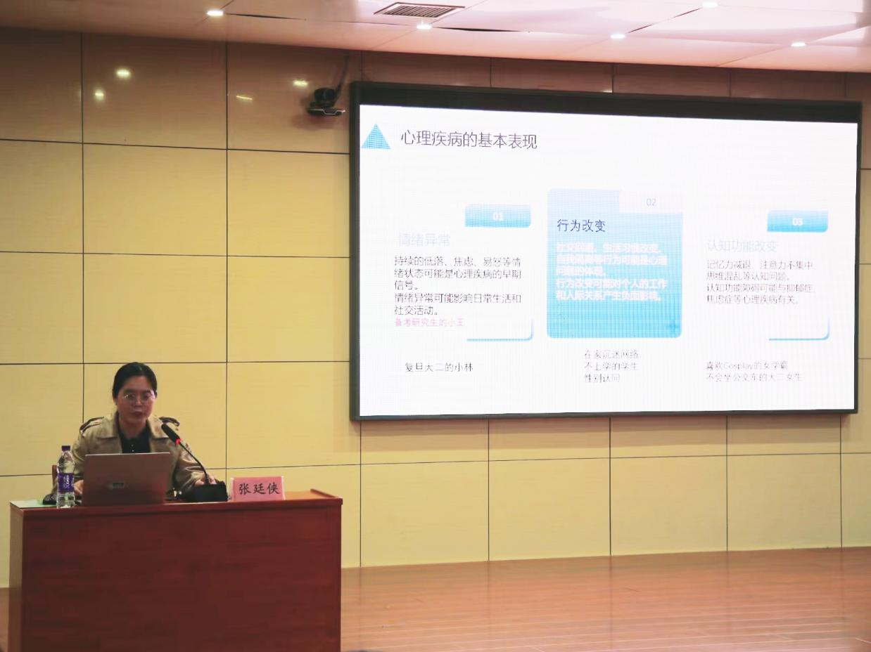 张廷侠主任“成为自己的心理咨询师”为题,围绕“了解与识别”、“悦纳与内省”以及“放松与阅读”三个方面展开深入讲解她通过实际案例分析指出大学生常见的心理问题,并强调通过情绪行为链的多维度分析,积极应对心理困扰。张主任的讲解生动具体,帮助同学们更好地认识自我、调节情绪,提升心理健康水平。