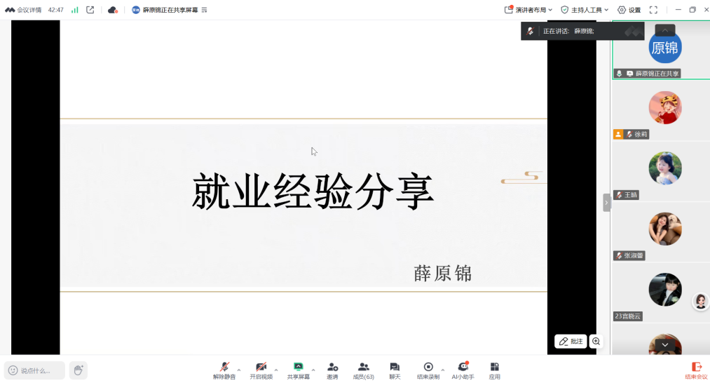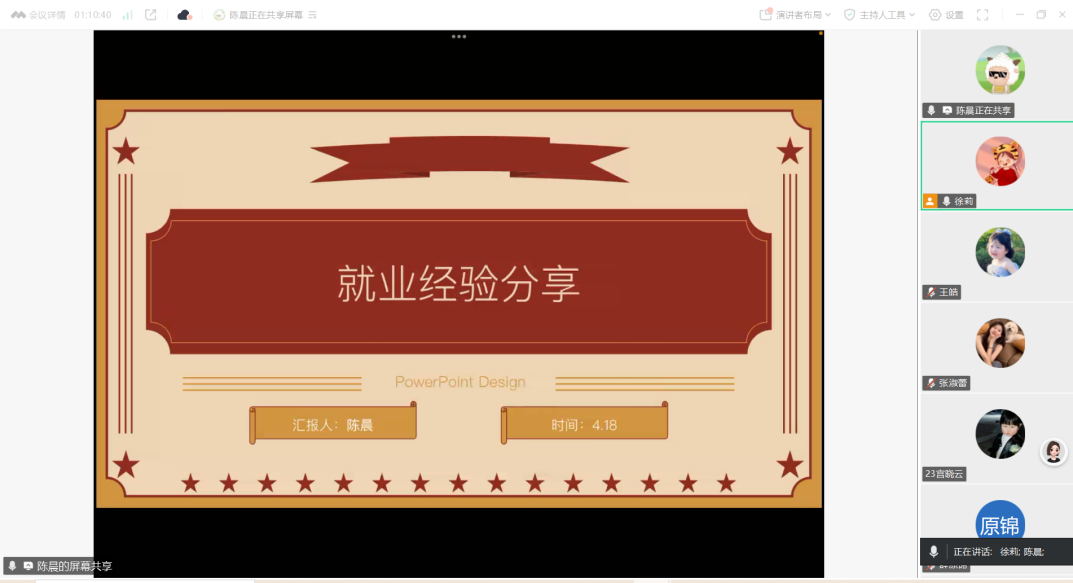 4月24日,姜家慧(升学于西安交通大学)从择校与专业、联系导师、报名方式、考试形式以及相关注意事项等内容展开详述,并勉励师弟师妹要坚持学习,潜心钻研;王玥涵(就职于山东农业大学)分别从就业方向选择、如何备考、应考干货等方面进行了分享;申迎冬(就职于淮阴师范欧冠直播平台