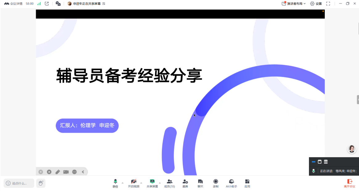 )给大家分享了辅导员考试过程中的笔试与面试内容,提醒大家要明确就业目标,不断提升自身的应变能力。