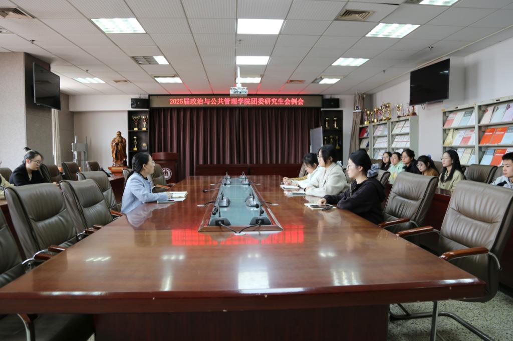 于JC909召开研究生会全体学生干部会议,2025年新一届研究生会全体成员参会,辅导员徐莉主持会议。