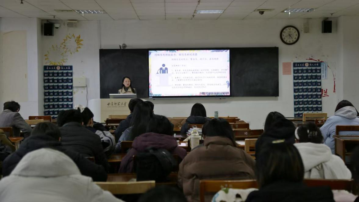 于JC605教室顺利召开提升网络素养教育主题班会,本次班会由研究生辅导员徐莉老师主持,2024级和2025级全体研究生积极参会。