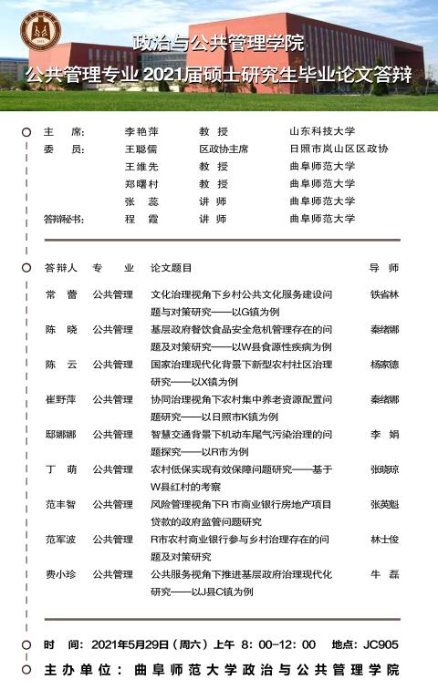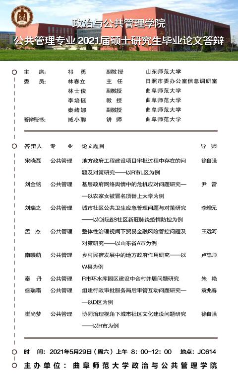 欧冠直播平台 2021届专业型硕士研究生学位论文答辩公告