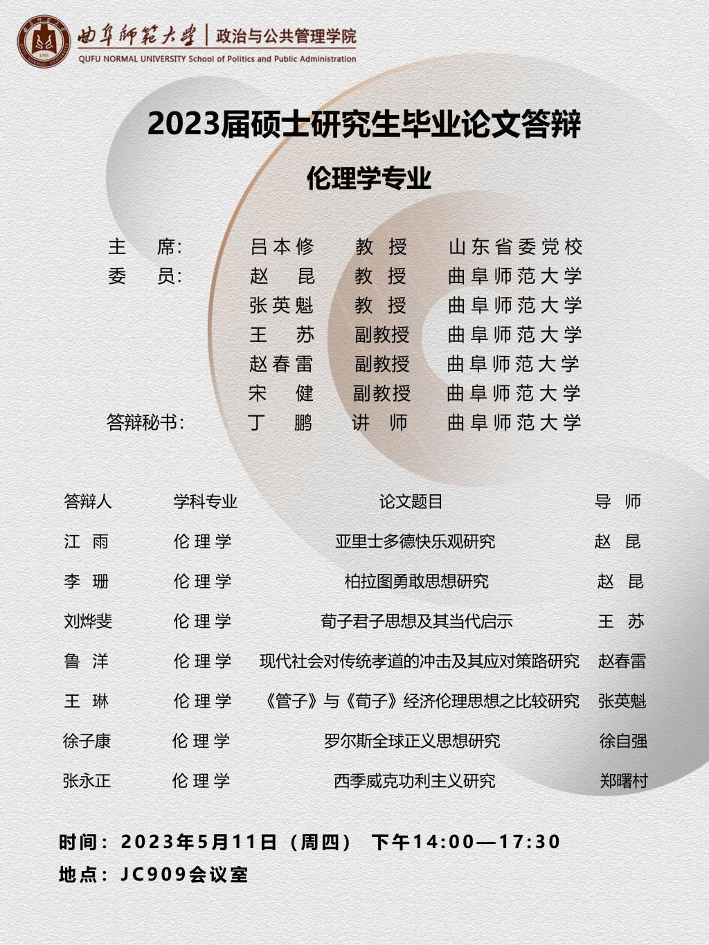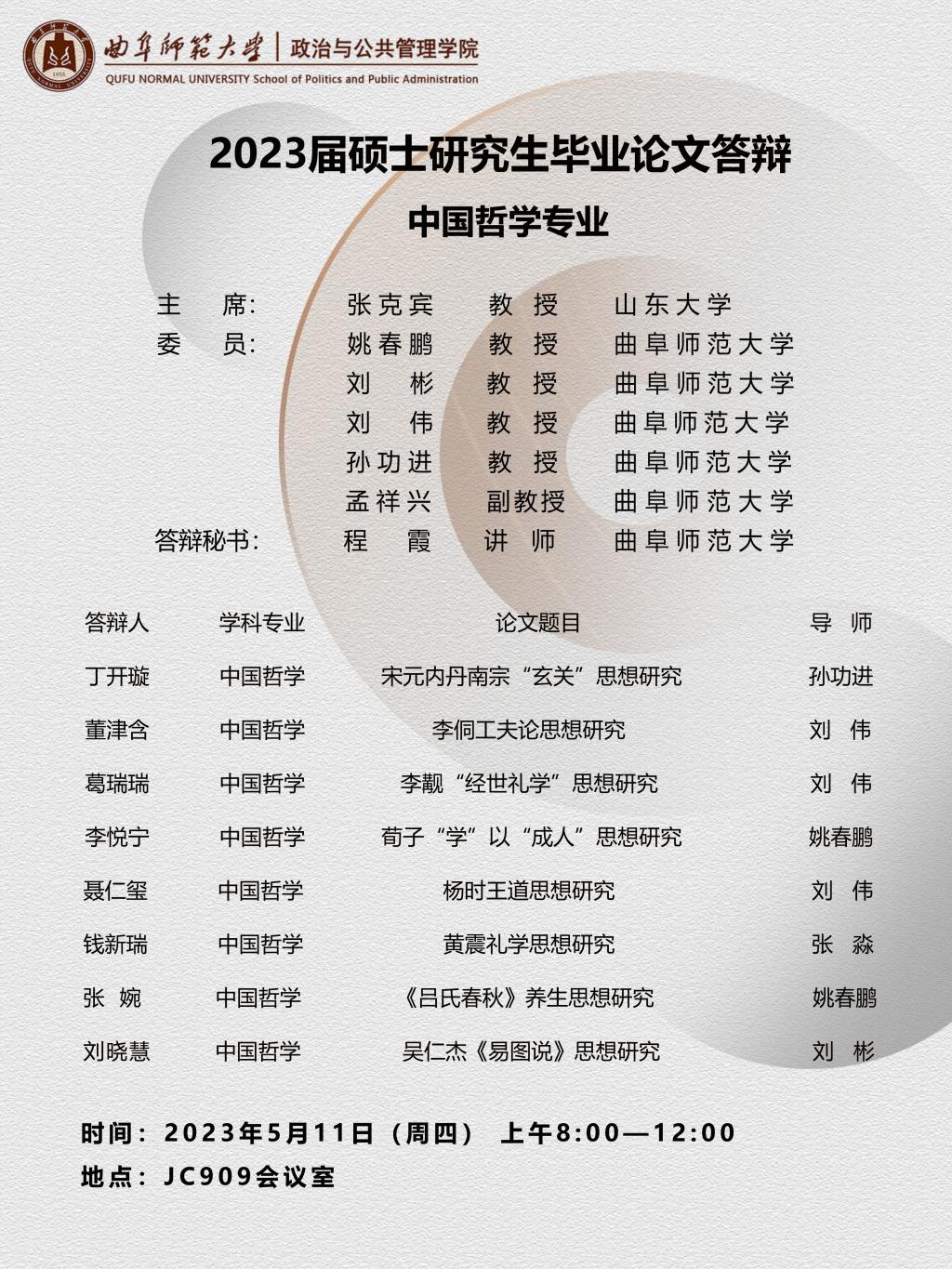 欧冠直播平台 2023届学术型硕士研究生学位论文答辩公告