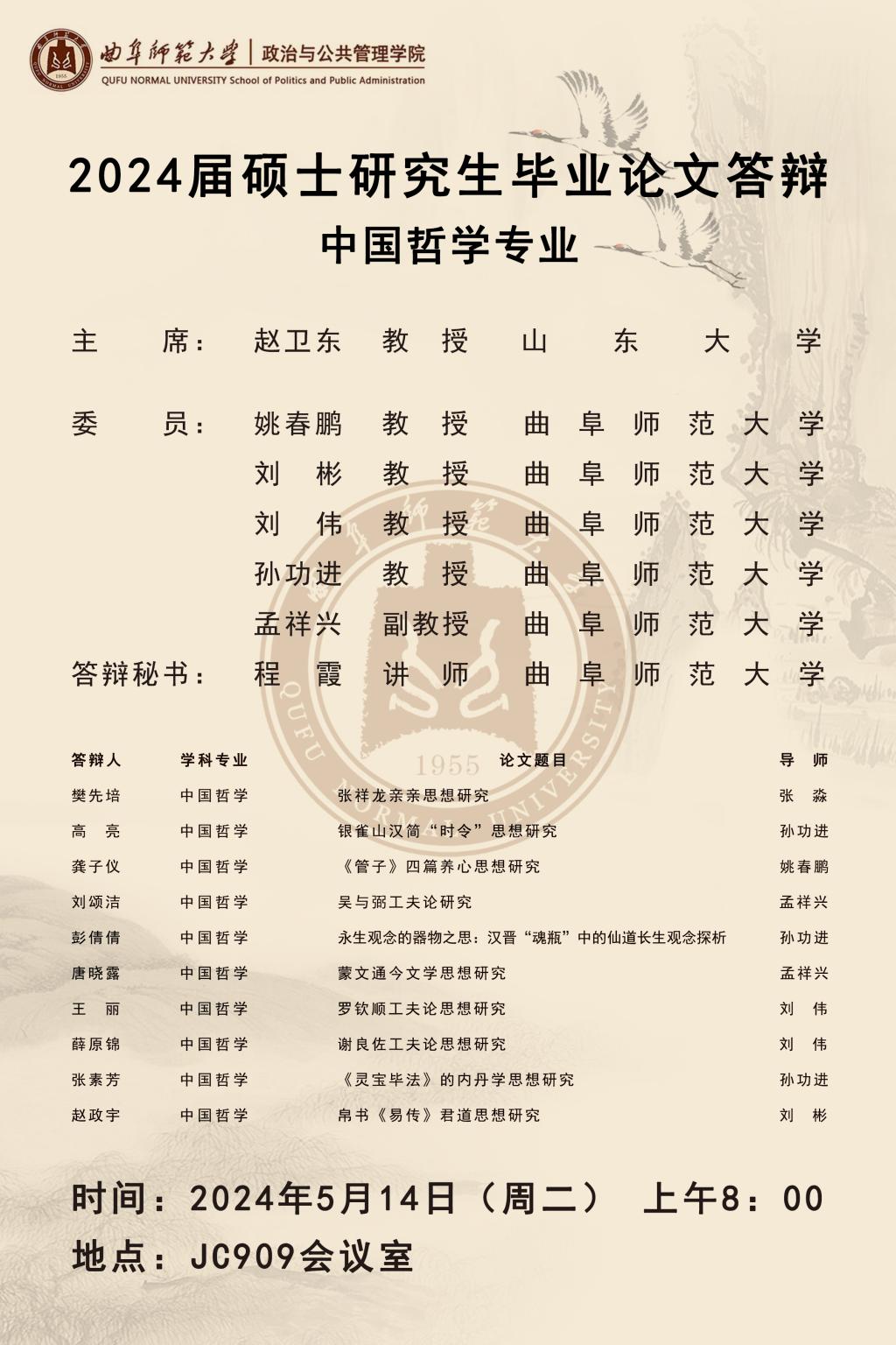 欧冠直播平台 2024届公共管理硕士研究生学位论文答辩公告