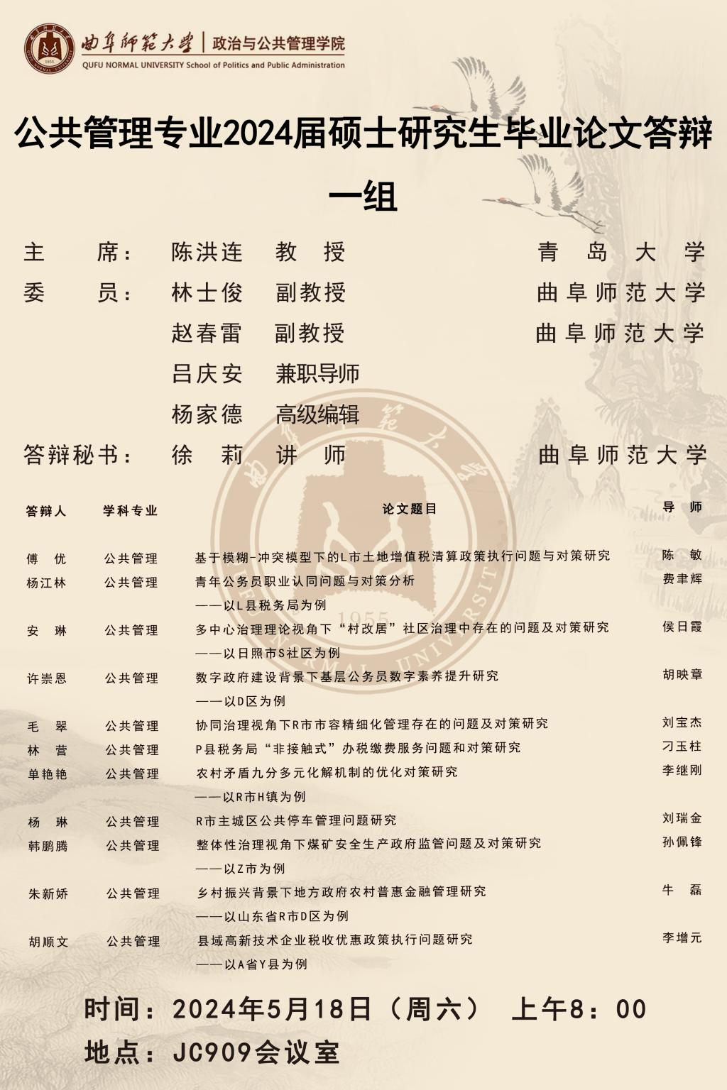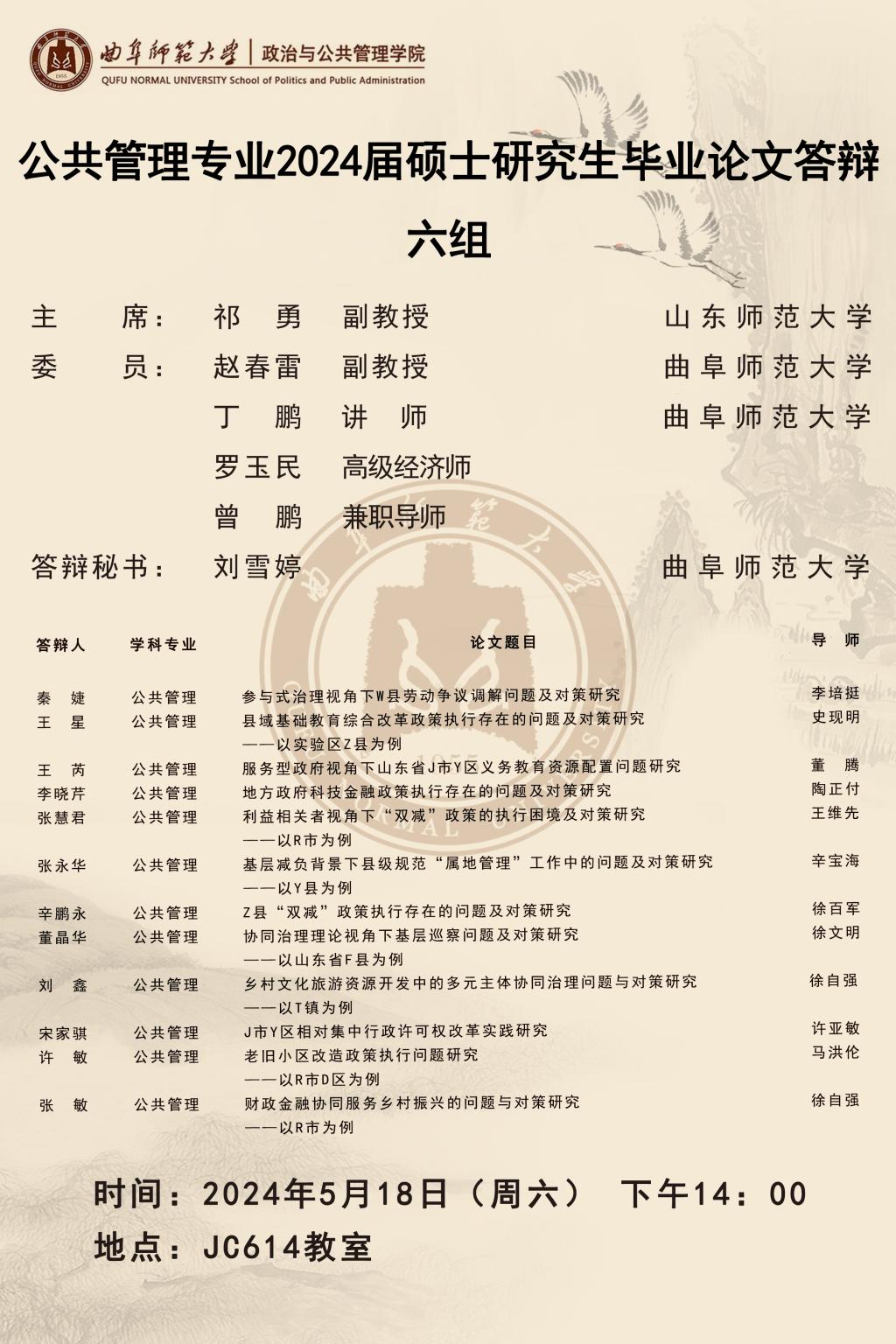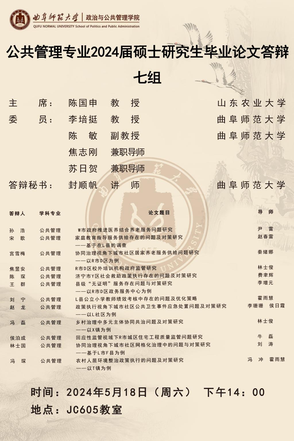 欧冠直播平台 2024届公共管理硕士研究生学位论文答辩公告