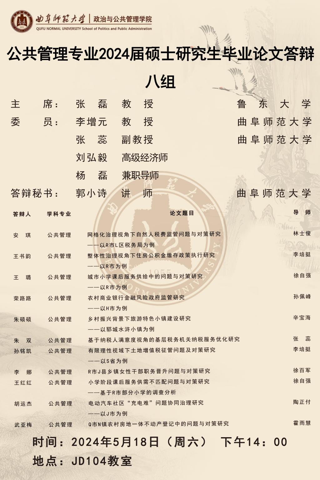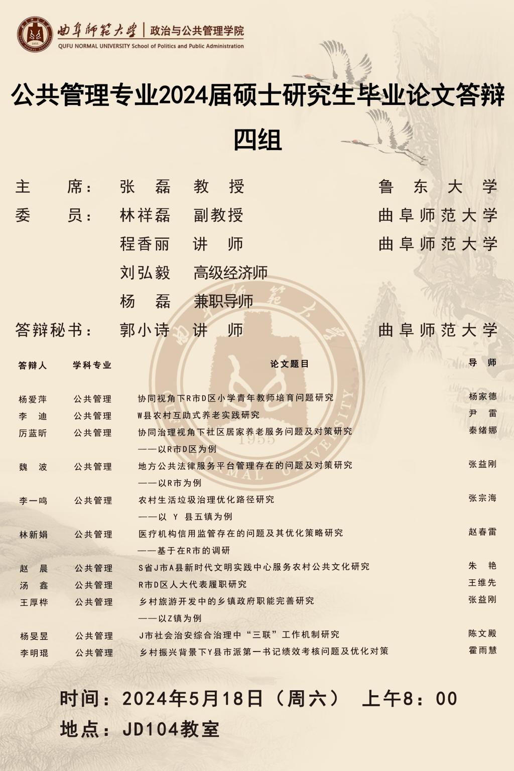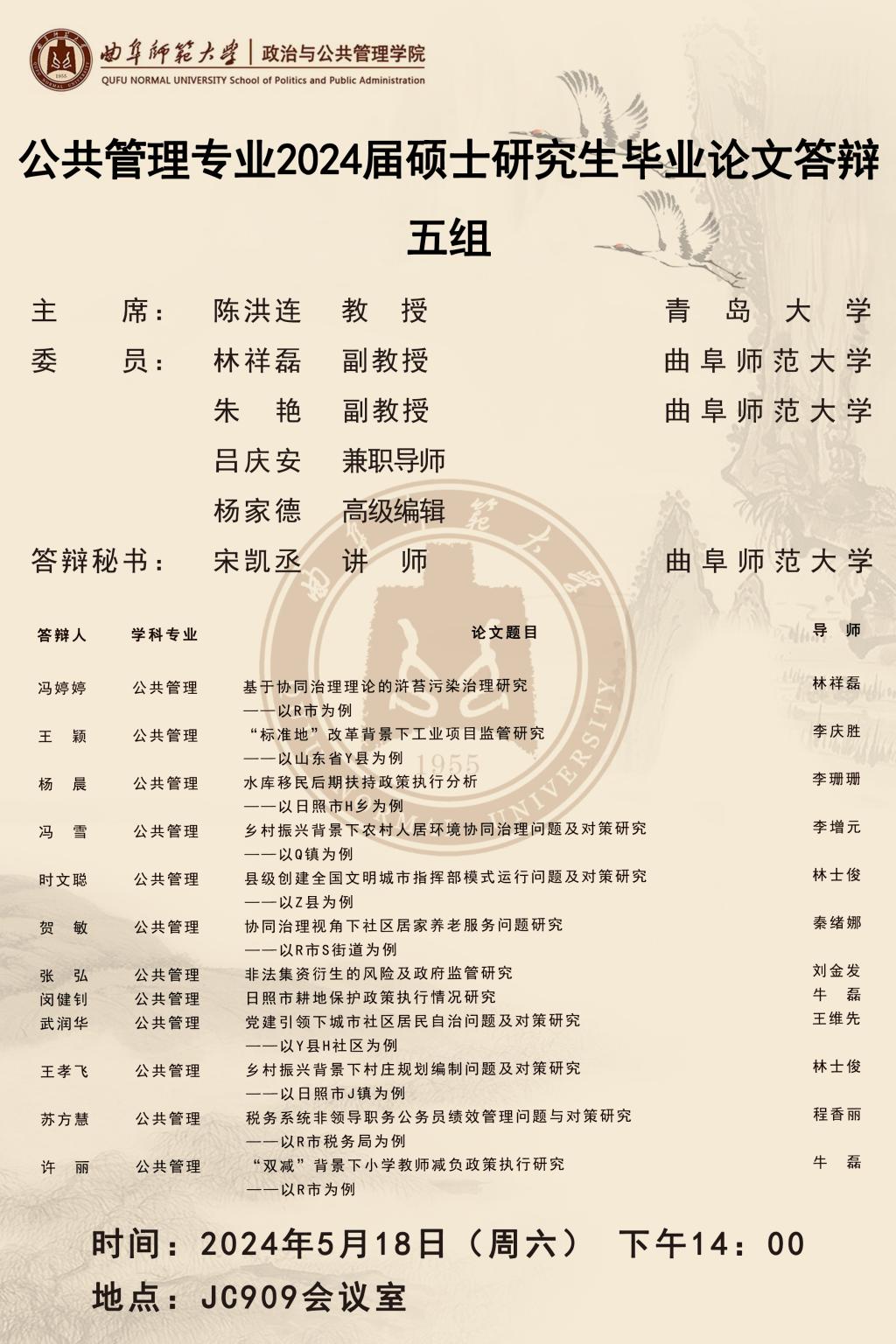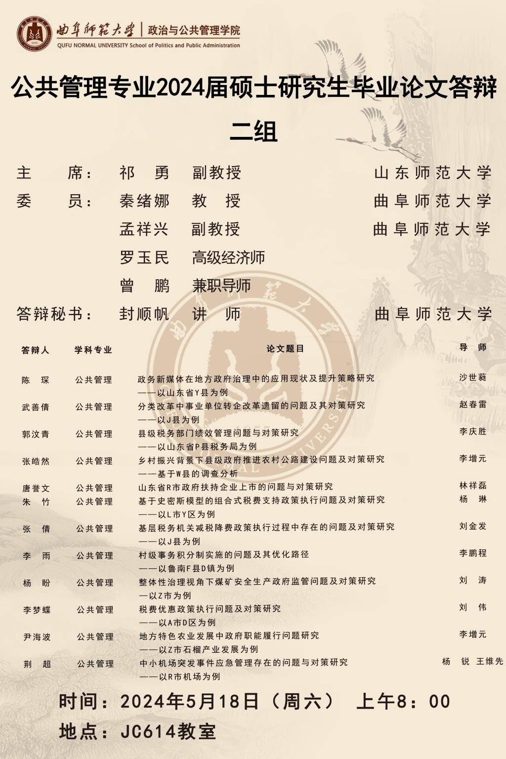 欧冠直播平台 2024届公共管理硕士研究生学位论文答辩公告