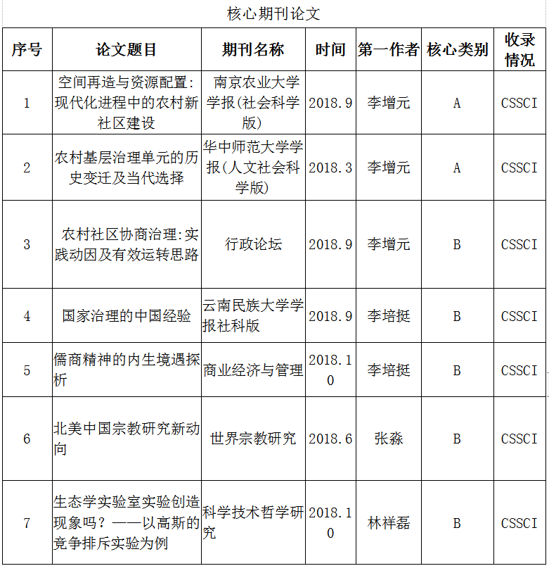 2018年度欧冠直播app 教师共获批国家社科基金项目2项,省级项目2项;欧冠直播平台 教师在《南京农业大学学报》《华中师范大学学报》等CSSCI核心期刊发表学术论文7篇,出版专著2部。