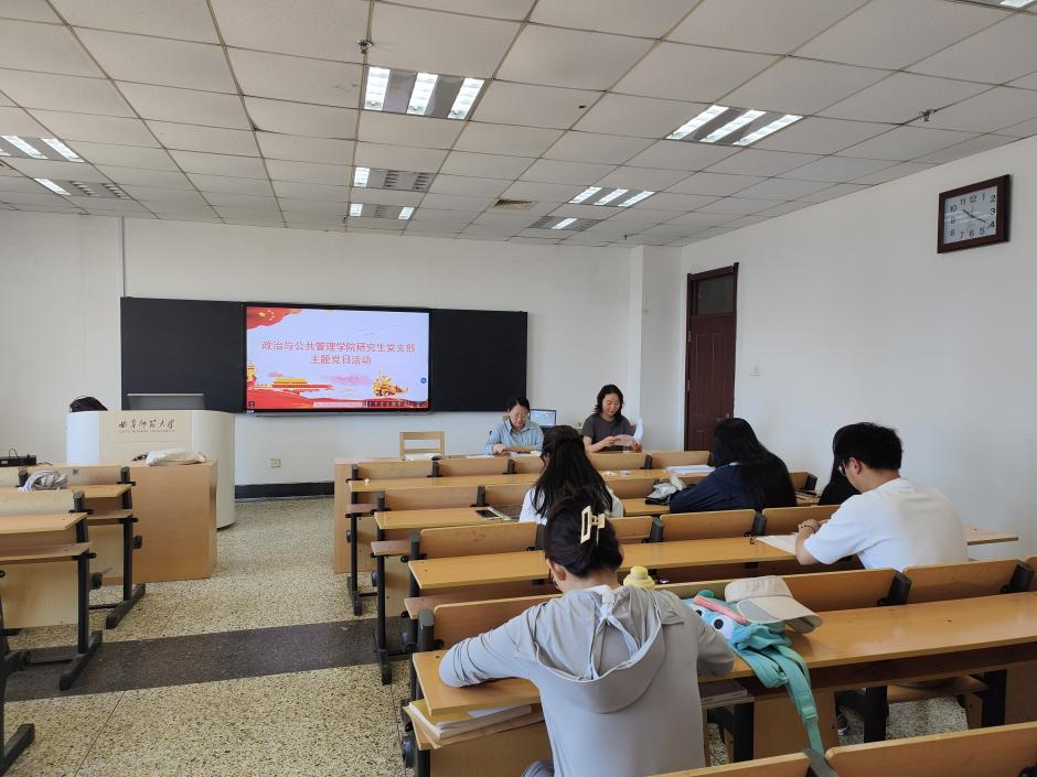 研究生党支部于JC614教室开展主题党日活动,活动由党支部书记徐莉主持,支部全体党员参加。