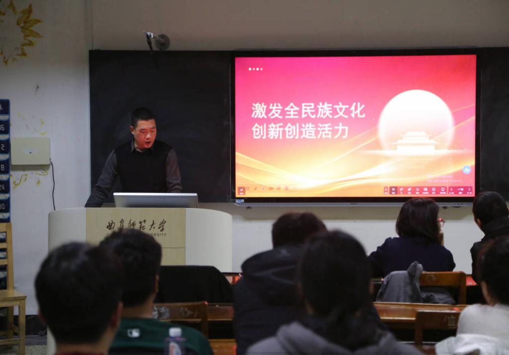 课上,张忠凯将习近平文化思想与党的二十届四中全会精神紧密结合,从背景意义、关键地位、五大基本要求和四大实现路径四个维度展开系统讲解。他指出,党的二十届四中全会明确提出激发全民族文化创新创造活力、繁荣发展社会主义文化的战略任务,这既是2035年建成文化强国的关键举措,彰显了国家对文化创新的高度重视,更凸显了建设社会主义文化强国对于中国式现代化建设、民族复兴伟业和提升国际竞争力的重要意义,引导全体党员深刻认识到激发文化创新创造活力的时代价值与使命担当。