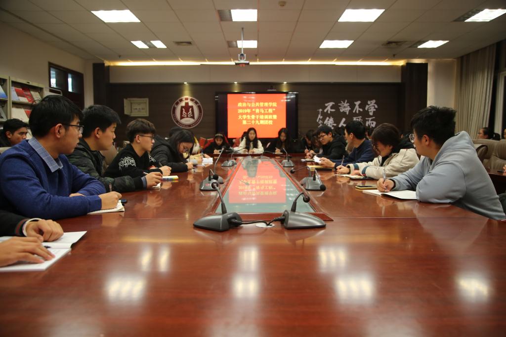 2019年“青马工程”培训暨第二十九期团校第五讲于JC909举行。本讲培训由院团委书记王元如主讲,团委学生会骨干成员和各团支部委员参加了培训。