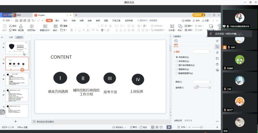 )特别强调了备考辅导员期间时间安排的重要性,她叮嘱师弟师妹在校期间要提前保质保量完成论文,以便为后期求职就业做好充分准备,建议大家在求职过程中要多与长辈、前辈交流,吸取经验教训。
