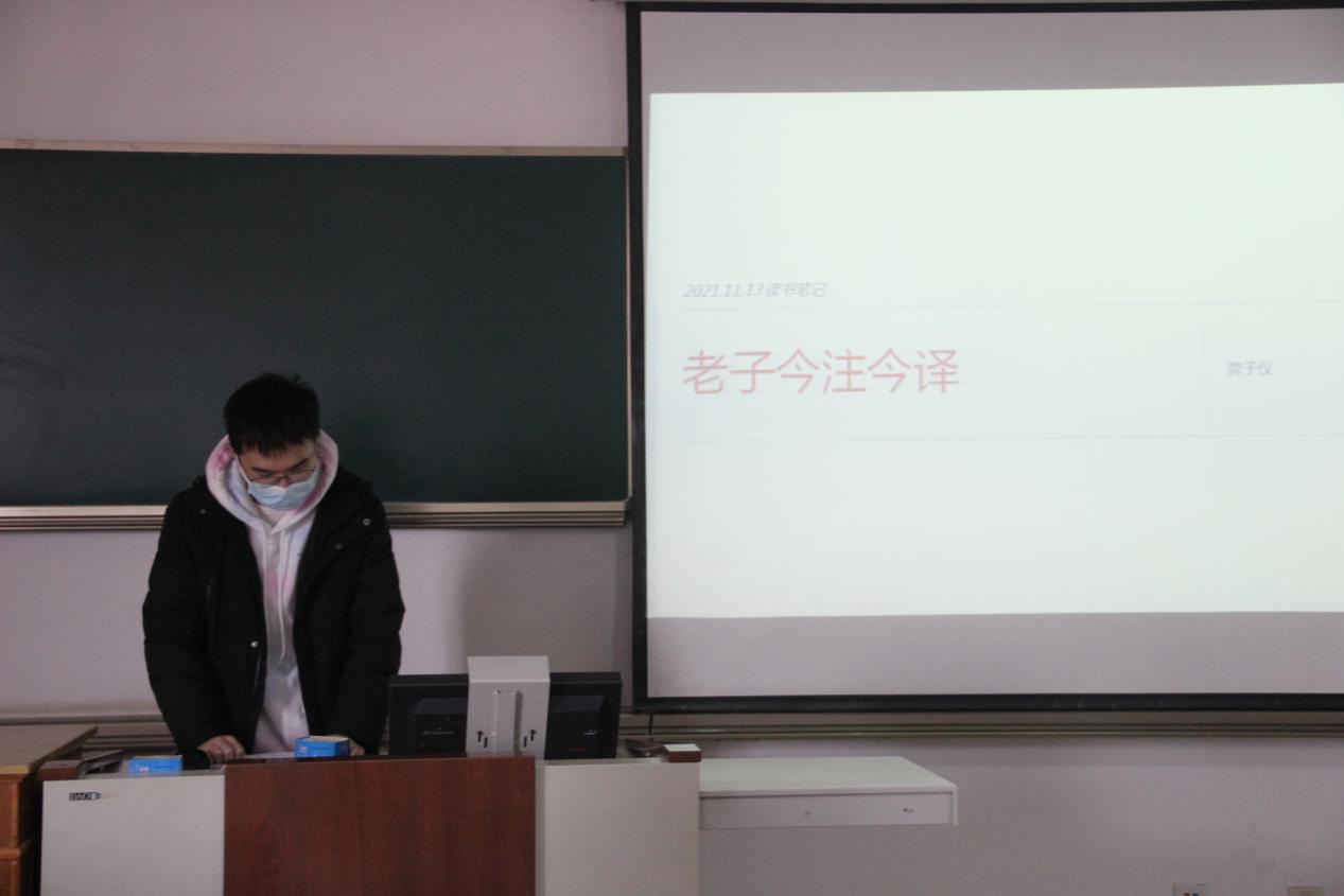 随后,2021级高亮同学分享了李泽厚的《中国古代思想史论》。本书主要介绍了先秦至明清的各种主要思潮、派别和代表人物。其中着重论证了中国的辩证法是“行动的”,而非“思辨的”,论说了秦汉时期所形成的具有有机反馈机制的“天人感应”宇宙观流传至今的原因,庄子、禅宗之哲学是对人生形而上美学的探究和追求,宋明理学作为道德形而上学的价值以及明清时期“内圣”和“治法”的分离趋势等内容。