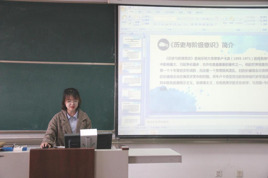 2020级张兴佳同学分享的书目是卢卡奇的《历史与阶级意识》。该书是匈牙利大思想家卢卡奇的所有哲学著作中影响最大、引起争论最多,也许也是最重要的著作之一。张兴佳同学详细介绍了卢卡奇生平及其物化理论的核心内容,并从概念定义、研究方法、扬弃路径三方面详细讨论了卢卡奇物化理论与马克思异化思想的异同。