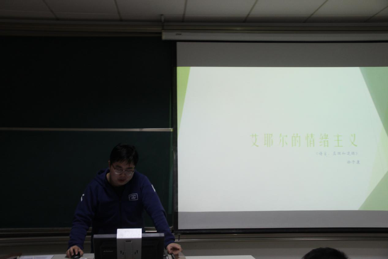 2020级徐子康同学分享了艾耶尔的《真理语言与逻辑》。首先,他介绍了艾耶尔情绪主义的理论背景,是基于摩尔的非自然主义和逻辑实证主义来进行的。其次,情绪主义是一种非认知主义,艾耶尔认为道德判断表达的不是信念,而是非认知情感,情感并非关于世界的表征,因而它是不适真的,所以道德判断也是不适真的。最后,通过对非认知主义的核心反驳,包括对其中蕴含的错误问题以及弗雷格—吉奇一系列问题的探讨,不断丰富和完善非认知主义的发展。