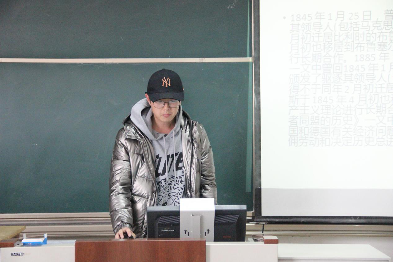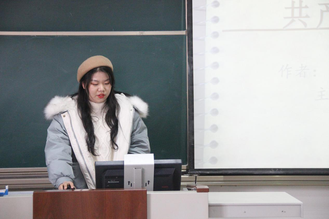 2020级沈琦同学分享了马克思、恩格斯编著的《共产党宣言》,她从《宣言》的内在逻辑结构、主要内容、理论及历史意义几个方面进行了讲解。她认为《宣言》作为科学社会主义诞生的标志,不仅为各国无产阶级提供了强大的思想武器,也为世界社会主义运动指明了前进的方向,更为无产阶级政党建设奠定了科学的理论基础。把握《宣言》的理论及历史意义才能从中汲取科学智慧和理论力量,才能推动整个人类社会的发展和进步。