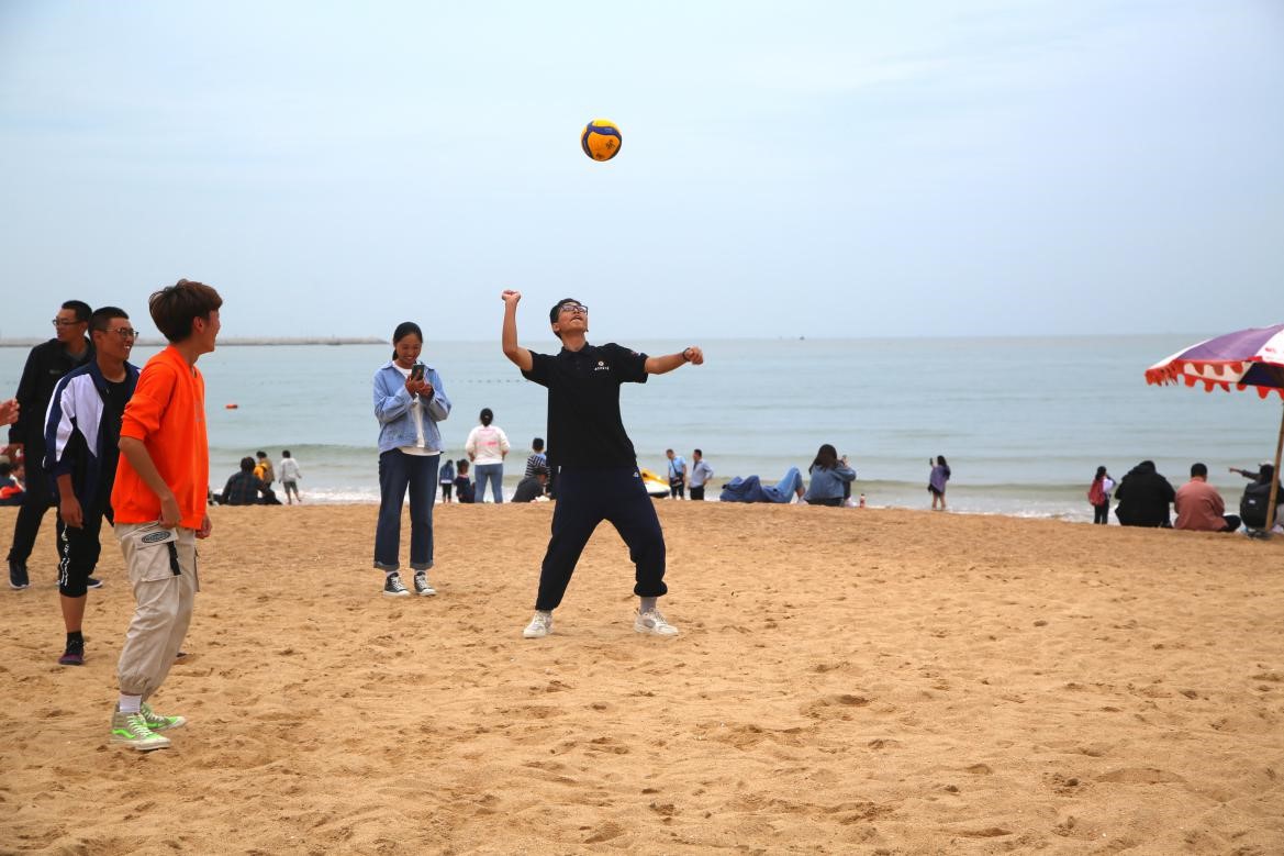 到达海岸后,同学们赤足踏浪,沙滩作画,嬉笑打闹,乐此不疲,即刻缓解了拉练的紧张和疲惫。与此同时,部分同学在学长的组织下开展沙滩排球对抗赛、你画我猜等系列活动,同学们积极参与,青春气息洋溢在脸上,欢声笑语响彻云霄。海风稍大,略带冷意,但同学们热情不减,精神抖擞,乐在其中。最后,各班在沙滩上合影留念,集合返回,至此2020级欧冠直播平台