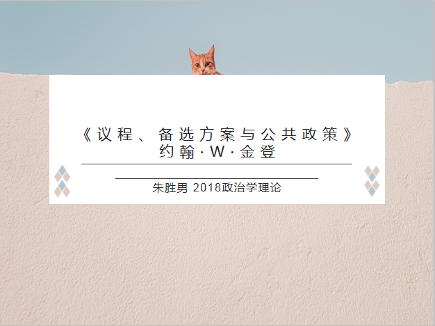 朱胜男同学结合个人毕业论文的研究对约翰·W·金登的《议程、方案与公共政策》进行解读,她主要谈到以下几点:第一,公共政策的过程包括议程建立、备选方案的阐明、阐明备选方案之间做出一个权威的选择以及决策的执行等方面,并对此进行了举例说明。第二,多源流理论是一种比较有创见性、解释力和发展潜力的理论模型,在政策系统中存在着问题流、政策流和政治流三种不同的源流。第三,虽然多源流理论对于研究政策议程的过程分析提供了一种新思路,但考虑到多源流理论是基于西方国家政治体制建立起来的政策分析理论,其用于分析我国的政策问题时是否需要作出修正还有待进一步验证。