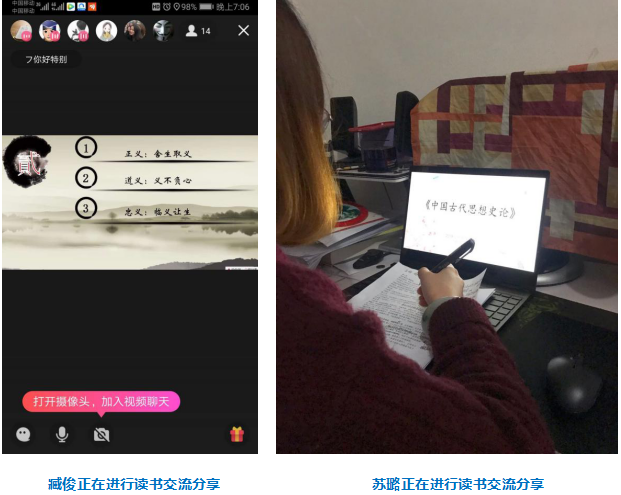 最后,姚春鹏老师针对本次读书交流会进行总结,希望同学们能积极参与发言,不要因为空间而减少互动,嘱咐同学们居家要多读书,多感悟。在交流会分享过程中,同学们收获颇多,本次线上政研论坛读书交流会圆满举行!