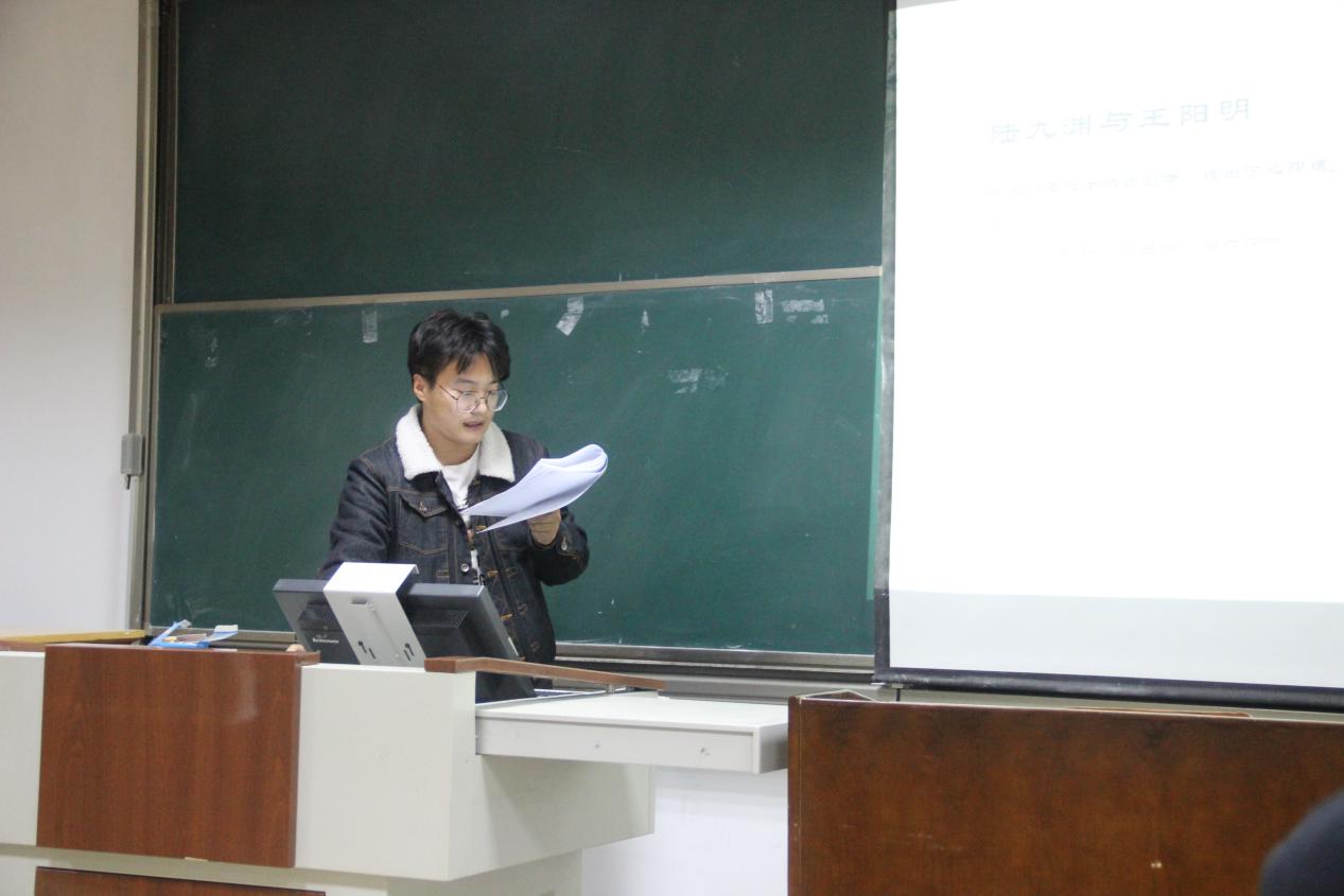随后,2019级陈吉彪同学就罗国杰老师的《中国伦理思想史》中宋明理学家进行讲述,他认为北宋周敦颐的《太极图说》对后世影响十分巨大,因为周敦颐汲取道家的本源论,建构了太极的生成论以证明儒家伦理存在的合理性;同时他又借鉴佛道的本体论思维,构建诚的价值本体论;提倡内圣外王的理想人格和无欲主静等修养工夫。郑曙村老师认为对于道学的研究,一定要“钻进去”,但不能闭门造车,不能钻牛角尖,要多与他人沟通交流。