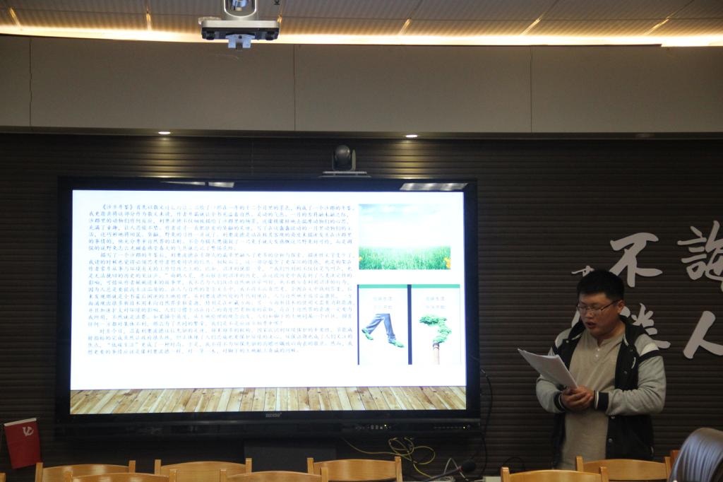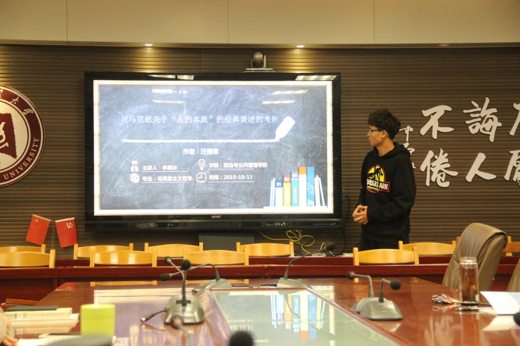随后,2018级伦理学专业的黄志宇同学就奥尔多·利奥波德的《沙乡年鉴》中土地伦理问题进行了浅析,该书是描述土地和人类关系的著作,被誉为土地伦理学开山之作,是利奥波德对在沙郡进行的生态恢复实践,在美国大陆各个荒野地带的游历经历,及其对土地伦理的所思所想的总结。黄志宇同学详细讲解了利奥波德的土地伦理思想并提出了自己的观点。在交流会中,同学们与老师就中国哲学中“天道”问题展开了讨论。孙功进老师总结,在有关天道的问题上,儒家天道是仁义道德的形上基础。
