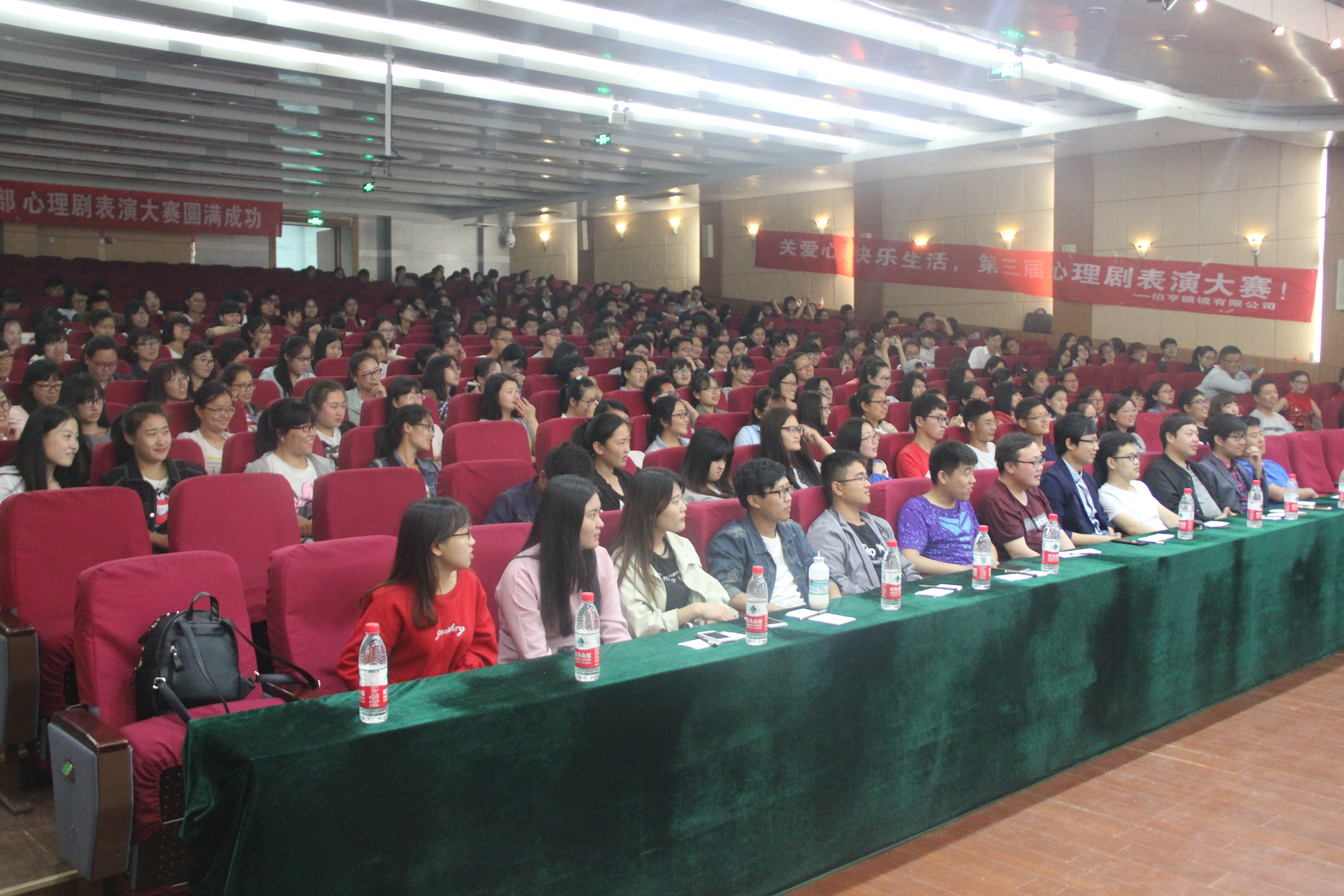 5月28日晚,由马克思主义学部团委学生会社团联合会心理部主办的第三届心理剧表演大赛于图书馆报告厅成功举行,张晓琼老师、汤锐老师、2014级辅导员韩凯辉老师、校心理健康指导中心副主任朱乐凯及学部团委学生会社团联合会主席团成员应邀出席并担任评委,2015级同学积极参加。