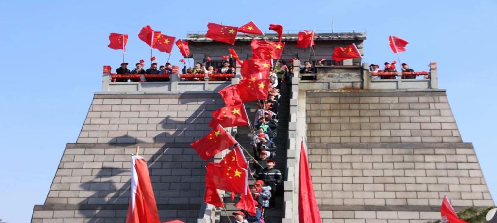 乘车到达蒙山山底后,一行人在陈敏的带领下,历经三个小时的攀登后到达主峰龟蒙顶。沿途中,同学们欣赏情人谷的美妙风光,脚踏玻璃桥,漫步悬崖栈道,在感受到浓浓的自然风情的同时,磨练了自己的意志。到达龟蒙顶后,全校师生共举五星红旗拍摄快闪“我爱你中国”向祖国母亲献礼。场面震撼,歌声嘹亮,唱出对祖国无限的感激与祝福。