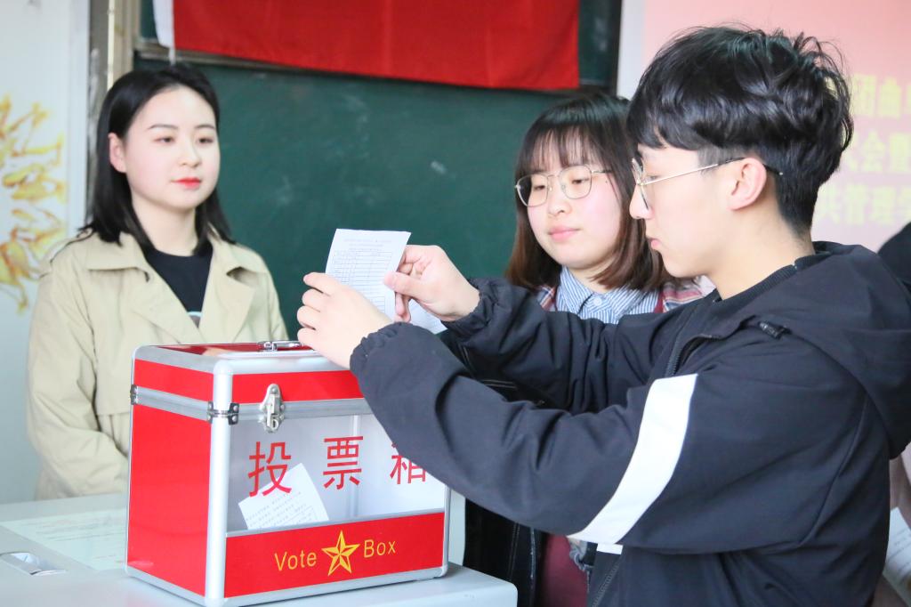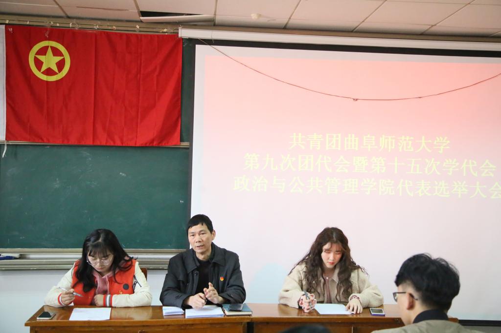 代表候选人预备人选情况,宣读校团委《关于同意王元如等同志为出席共青团曲阜师范大学第九次代表大会、曲阜师范大学第十五次学生代表大会代表候选人预备人选的批复》。随后,王元如根据选举流程讨论候选人名单并宣读候选人选举过程,通过监票人、计票人名单,经集体讨论后,提出本着公平公正原则选举出王元如、闫力、赵焱鑫、侯慧炎、董晓宇、程然六名代表,在全场热烈的掌声中本次会议圆满结束。