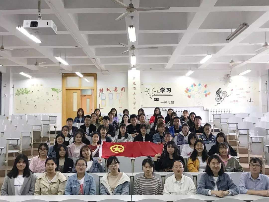 18级政治学与行政学三个班级、哲学班共同助力。首先,政治学与行政学 (无方向班 )团支部在共青团的旗帜下与团旗合影,他们以 “壮丽青春绣美景,广阔天地放英华 ” 为口号,期望团支部迈着矫健的步伐,不断奋斗,走向美好明天,对能够与万千共青团员一起共同创造新的世纪、新的辉煌表示期待。随后,哲学班接过活动第二棒。哲学班以 “岁月如诗,句句含情 ”的唯美话语为引,希望通过与团旗合影能够眺望团支部从前走过的道路,细数支部团员们一起走过的风风雨雨和一起努力的点点滴滴。哲学班坚持以 “团结互助,苦乐与共 ”为信念继续奋斗。