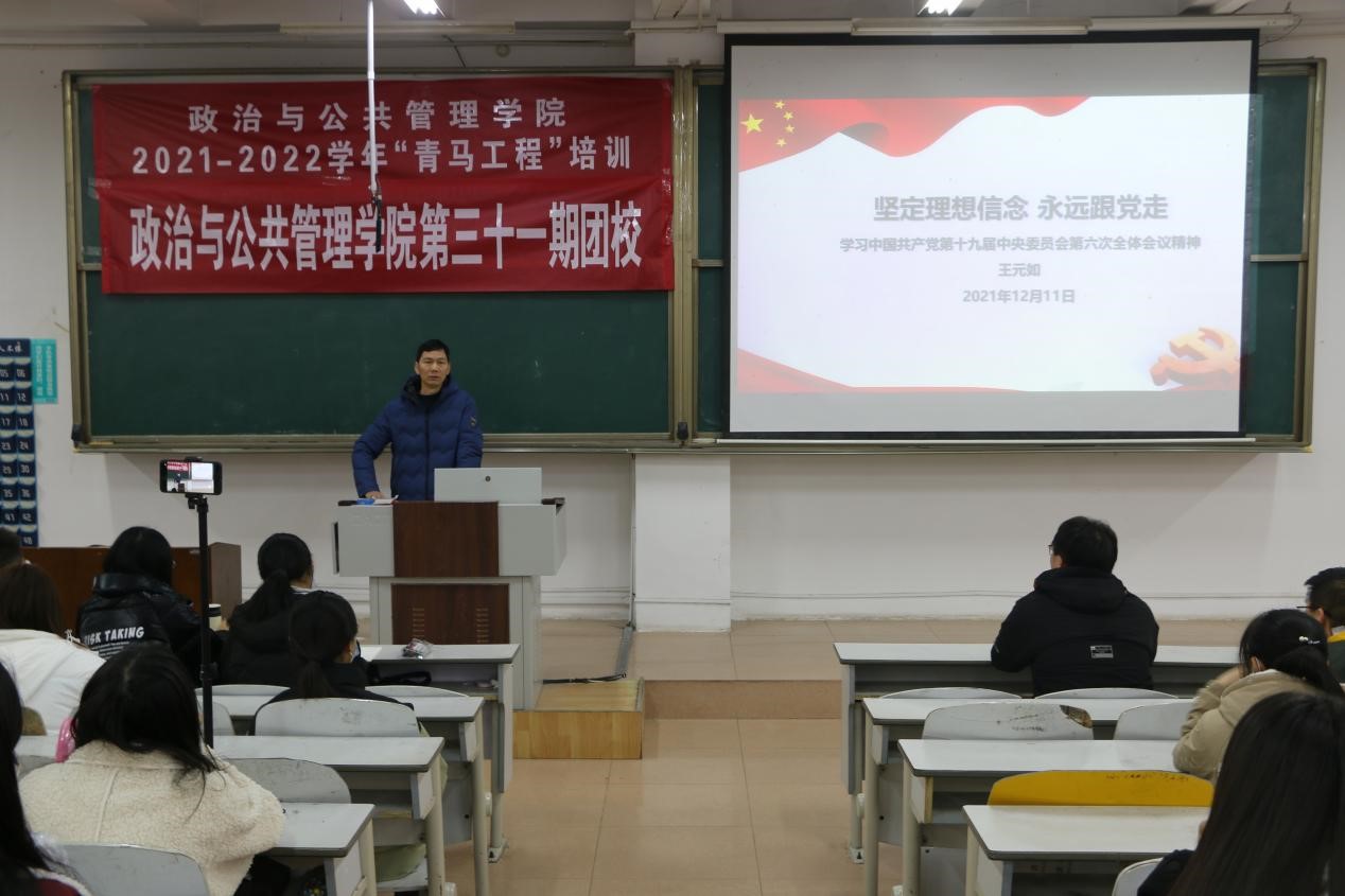 辅导员王元如主讲,本期“青马工程”暨第三十一期团校学员参加培训。