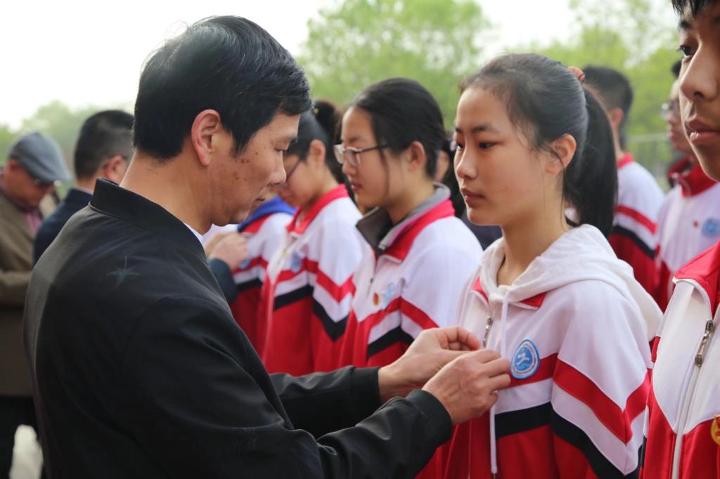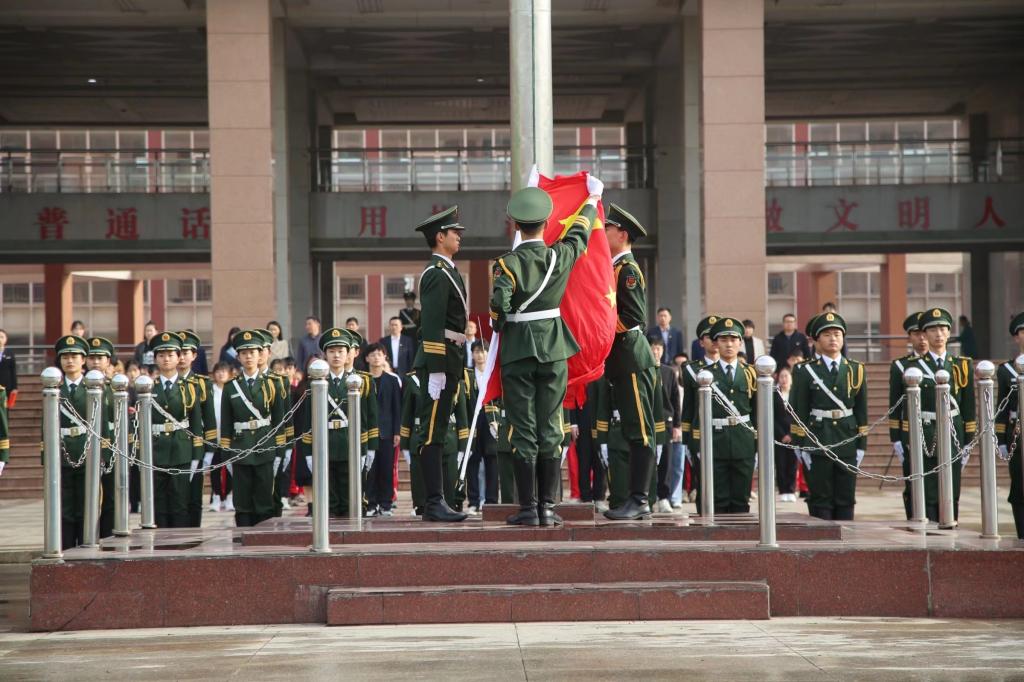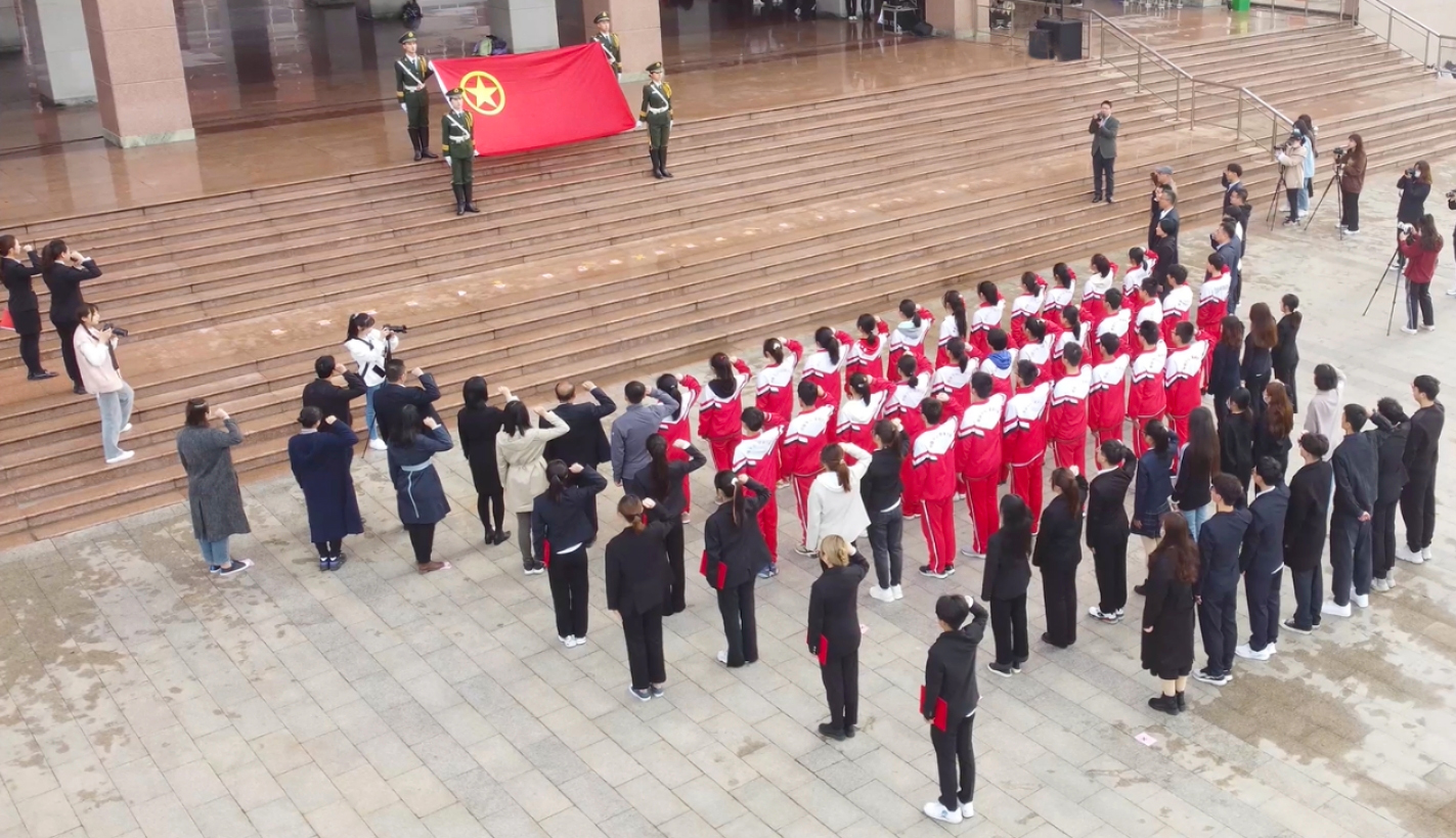 活动伊始,国旗护卫队整装待发,待“齐步走”口令响起,迈着铿锵有力的步伐向升旗台走去,气势锐不可当。伴随着嘹亮的国歌声,鲜艳的五星红旗冉冉升起,在初日的光辉照耀下,全体师生肃然注目。接着,老师们为新团员佩戴团徽,嘱咐同学们今后要更加严格要求自己,严格遵守团章,履行团员义务,将共青团的精神牢记在心。随后,新老团员面向团旗庄严宣誓。最后,快闪形式演唱的歌曲《我爱你中国》,朗诵的《百年风雨砥砺,初心历久弥坚》和合唱的《中国新时代》展现了当代青年为党庆生,讴歌新时代的精神风貌,表达了对中国共产党和祖国的热爱之情。