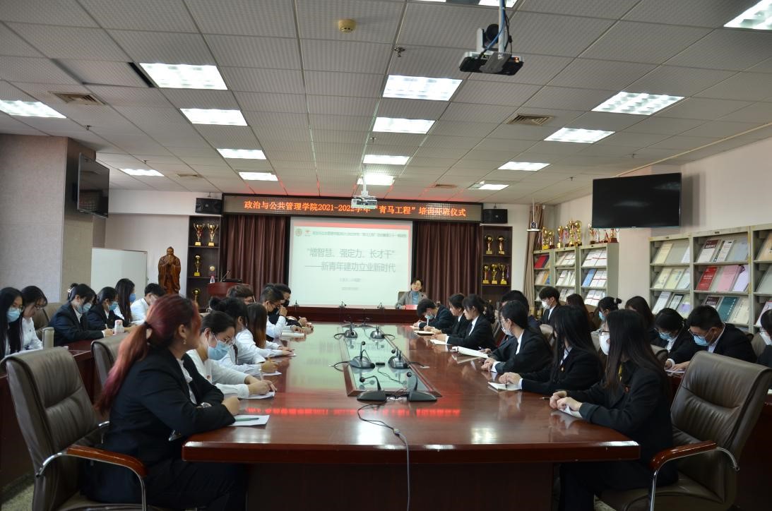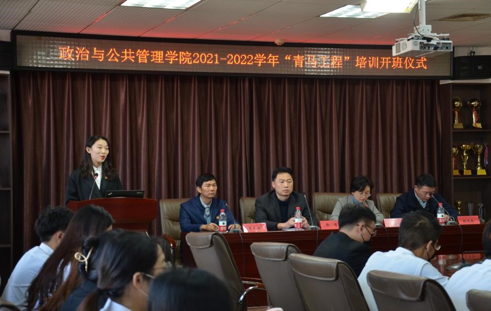 2021-2022学年“青马工程”培训暨第三十一期团校培训方案》。接着,学员代表王晓彤发言。她讲到作为共青团的骨干成员,在此次培训中更应充分运用马克思主义立场、观点、方法观察分析问题,坚定正确政治方向,奋力成为担当民族复兴大任的时代新人。