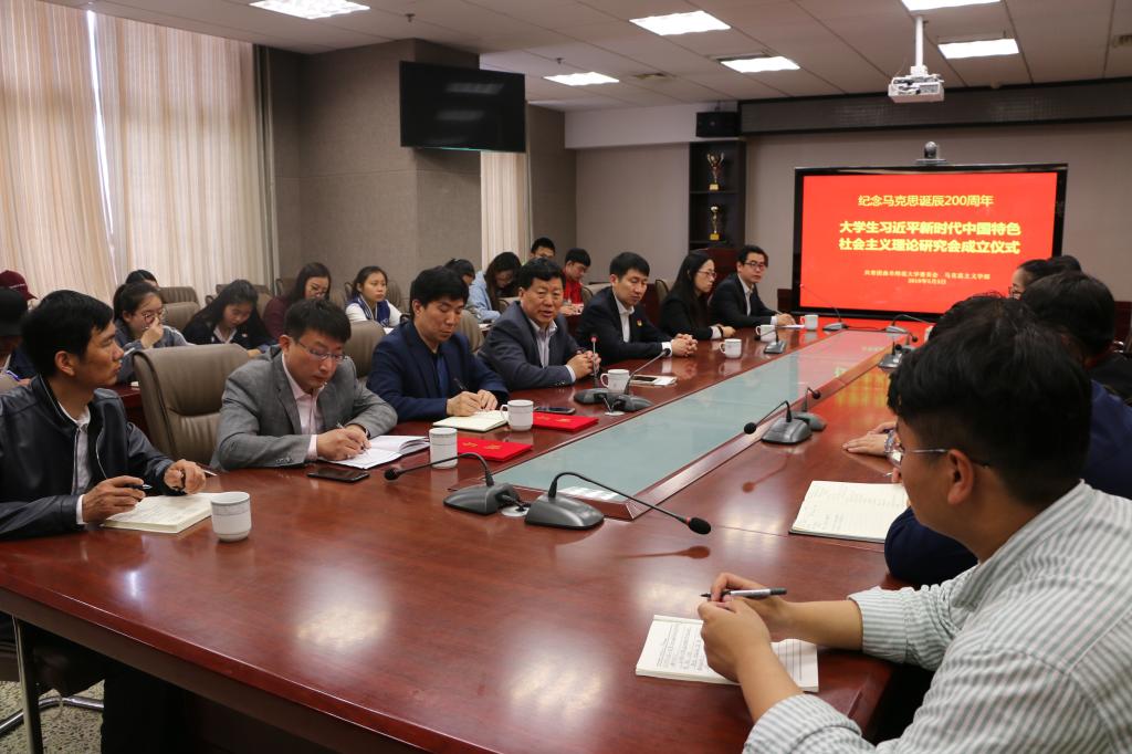 5月5日,马克思诞辰200周年纪念日到来之际,曲阜师范大学大学生习近平新时代中国特色社会主义思想研究会成立仪式于马克思主义学部会议室隆重举行。仪式由团委宣传部长马腾主持召开,马克思主义学部党委书记张立兴,校团委书记宋国栋,马克思主义学部党委副书记宋钧文、孙国庆,校团委副书记刘蓉以及欧冠直播平台