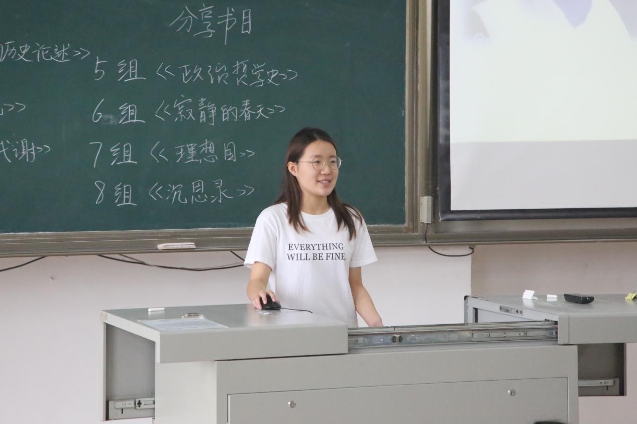 接着,同学们通过演讲精心准备的幻灯片来讲述自身读书见解,从作者简介、内容梳理与分享、理论联系实际的现实观点等多方面进行全面剖析。