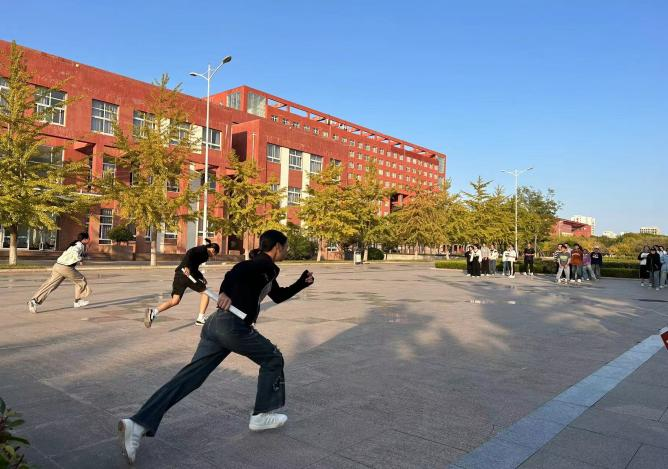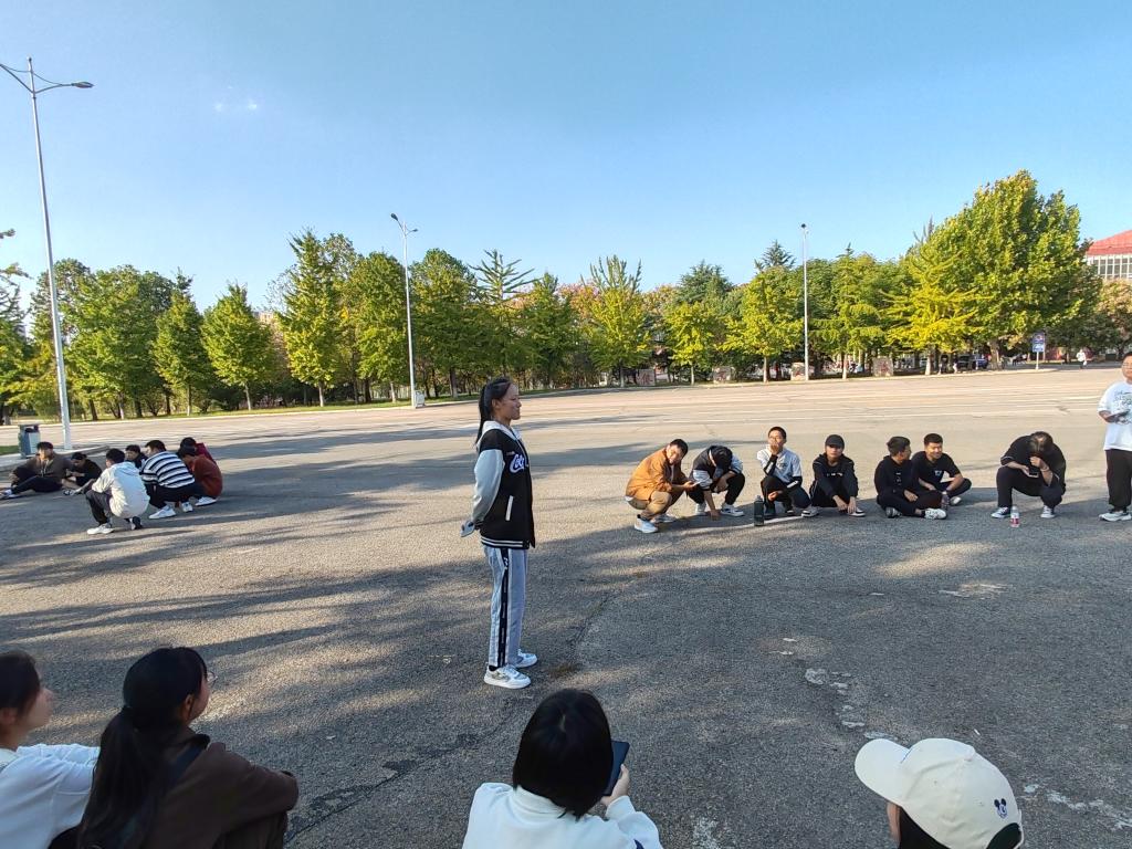 2023级新生心理行为训练在日月广场展开。新生辅导员耿晓敏出席活动,学生会心理安全部部长主持活动。