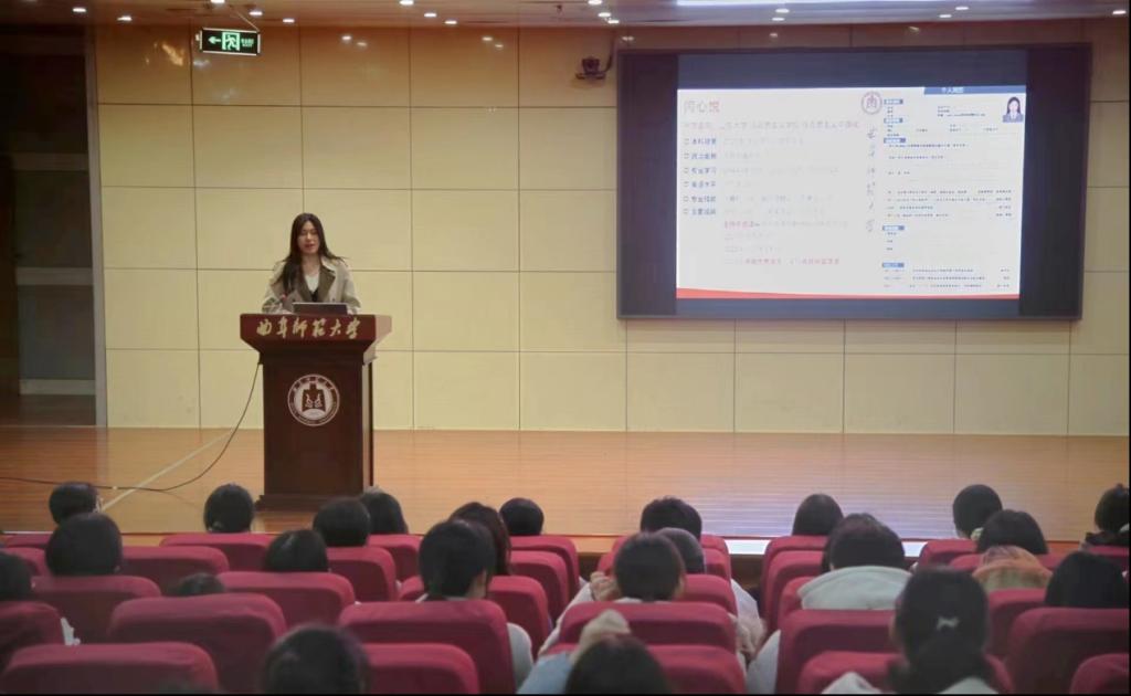 闫心悦从专业知识的学习角度出发,主要从学习专业知识、提升个人能力、丰富个人履历等方面为同学进行讲解,并且鼓励大家敢于尝试,建议同学们考取相关证书、积极参加竞赛从而更好服务未来就业。